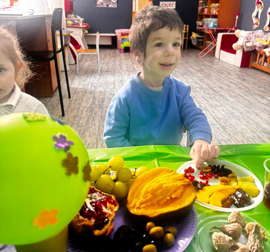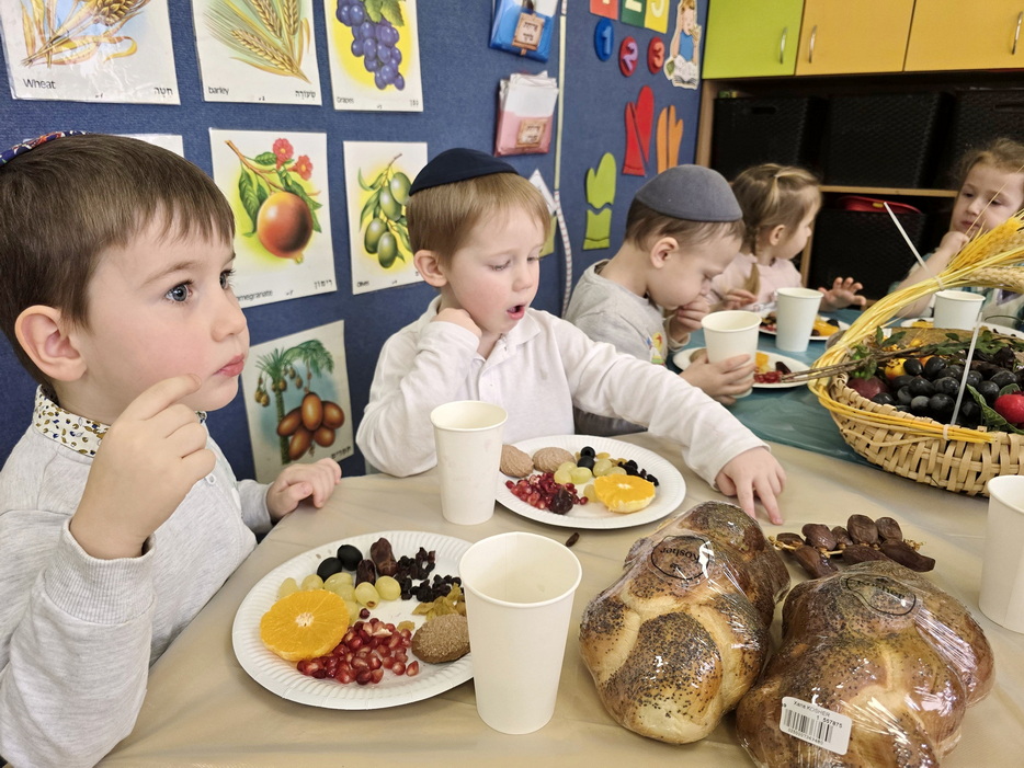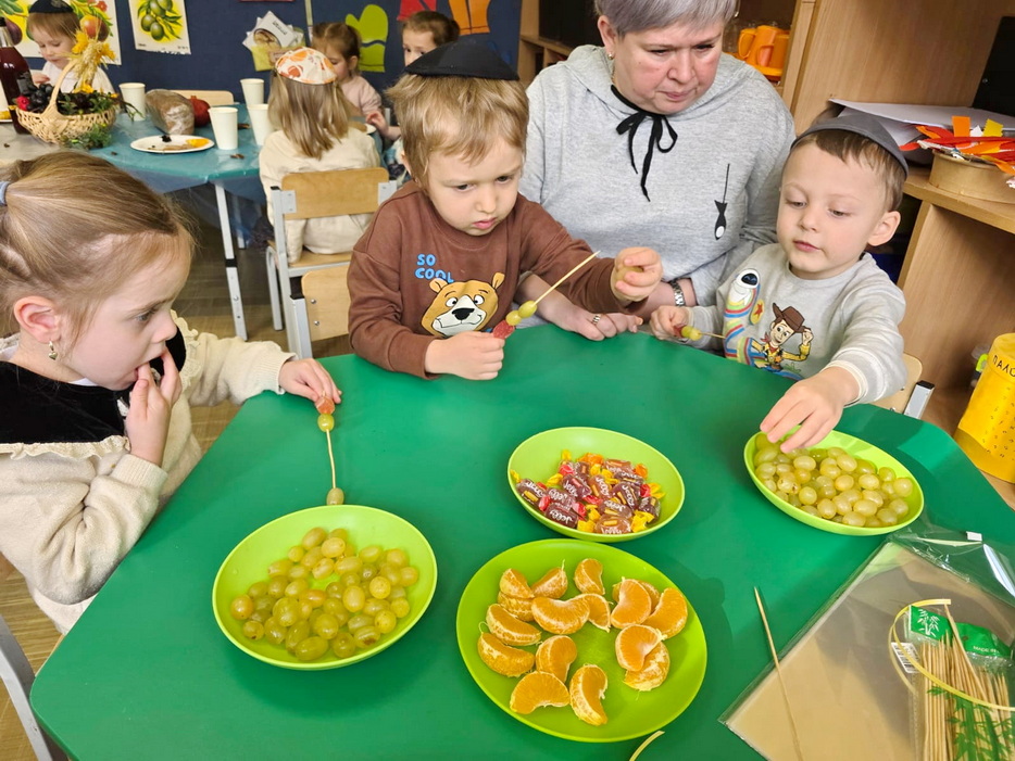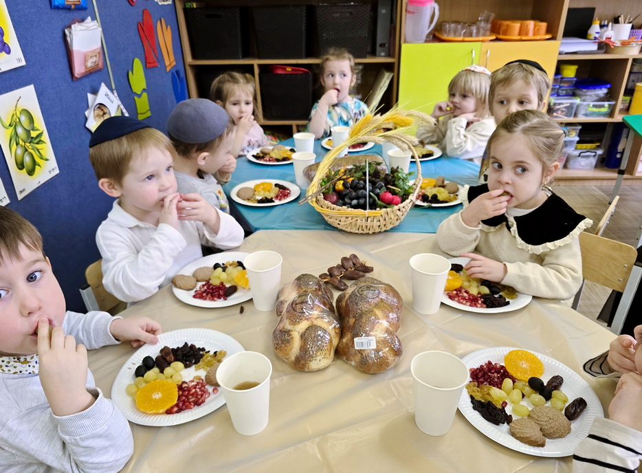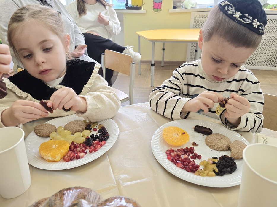 Центральным событием дня стала праздничная трапеза – Седер Ту Би Шват. Дети пробовали плоды деревьев, учились произносить благословения и в доступной форме узнавали о семи плодах Эрец Исраэль, имеющих особое значение в еврейской традиции. Через вкус, рассказ и совместное участие воспитанники смогли почувствовать связь с Землей Израиля и глубже понять смысл праздника деревьев и обновления природы.