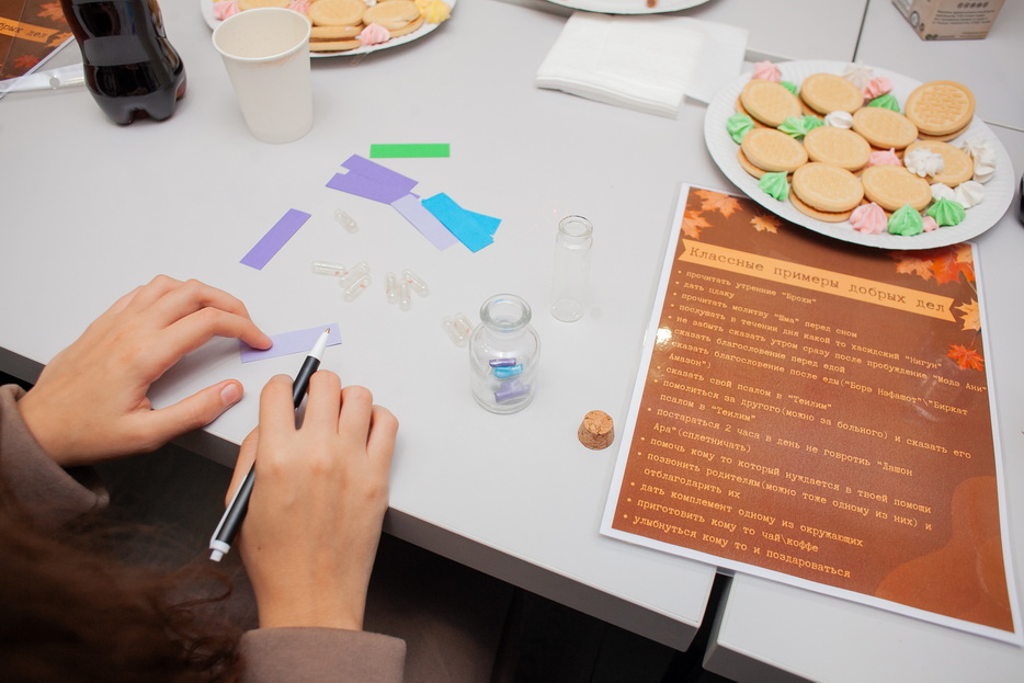 Одним из выводов стала важность для каждого, после периода праздников, когда Вс-вышний определил для нас что и как надо делать, самому принять решение и самому определить, что надо сделать для приближения к Торе и идишкайт, а для этого была предложена особая процедура – каждая девушка выбирала капсулы, в которых находилась записка с добрым решением, чтобы иметь возможность его осуществить именно в месяц хешван, и каждая участница смогла таким образом выбрать до десяти добрых решений, которые она сама постарается реализовывать в течение этого месяца.