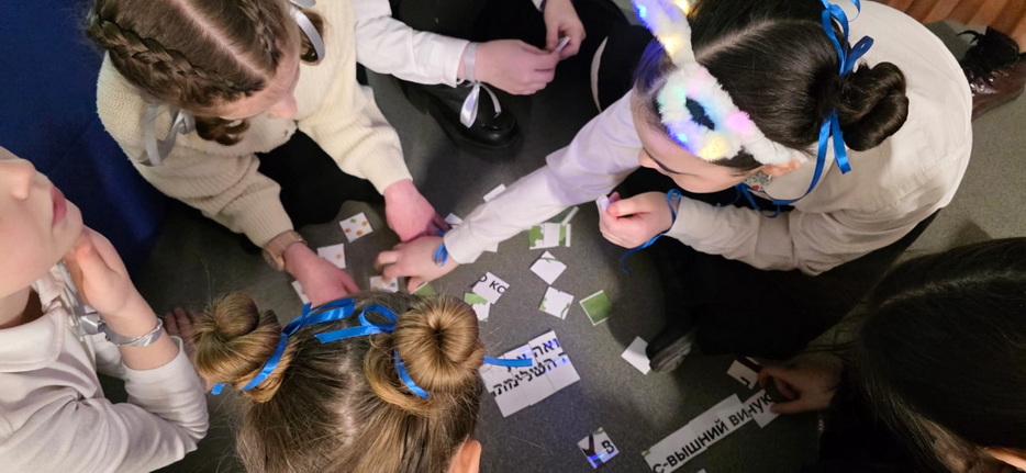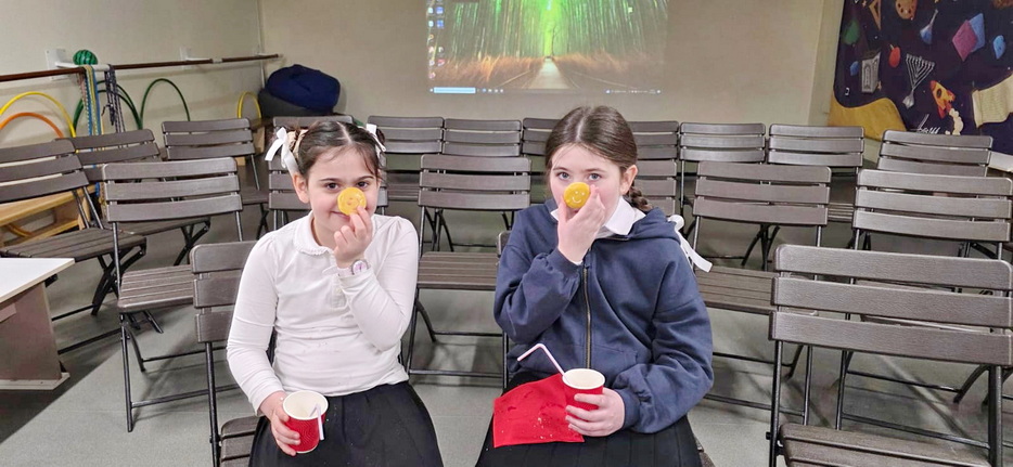 С первых минут праздник был построен не только как разговор, но как проживание этой идеи. Девочки работали с образом смайликов, находя противоположные образы выражающие различные эмоции сравнивая лица «до» и «после», учились через мимику передавать разные состояния и буквально показывали, как можно перевернуть настроение. Этот визуальный и эмоциональный прием помог глубже прочувствовать смысл месяца адар – времени, когда радость становится осознанной духовной силой.