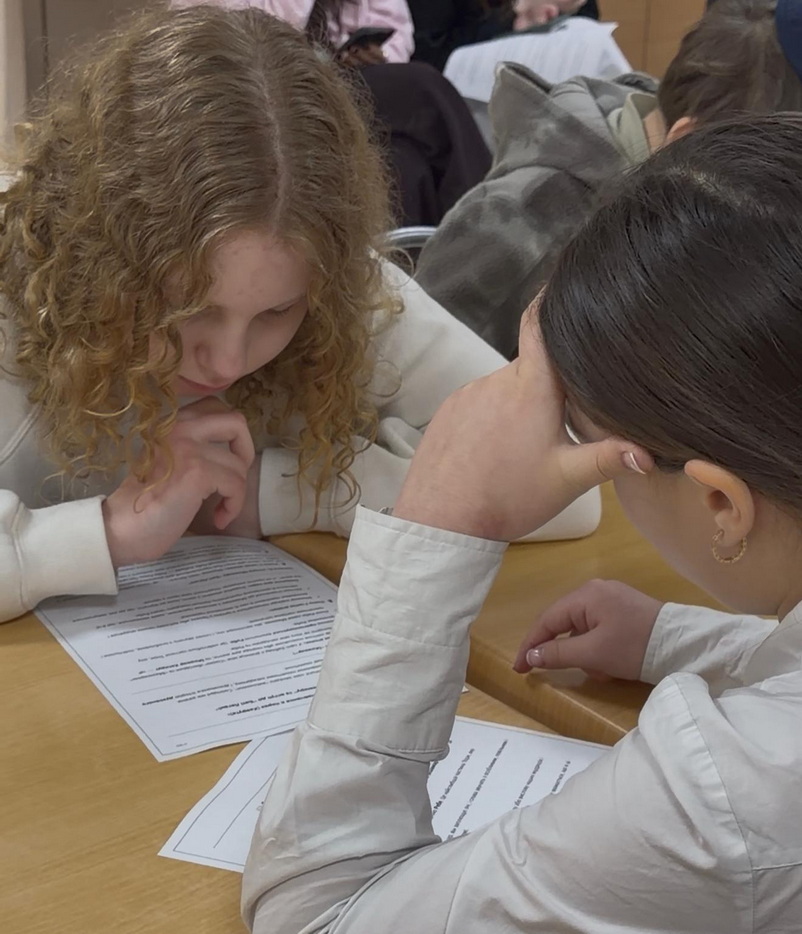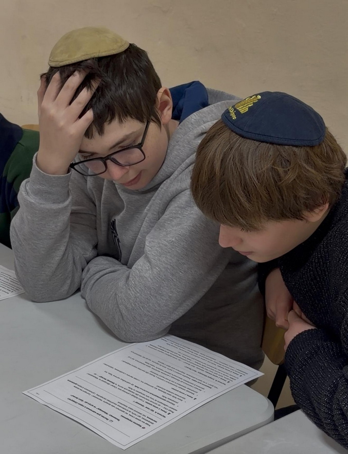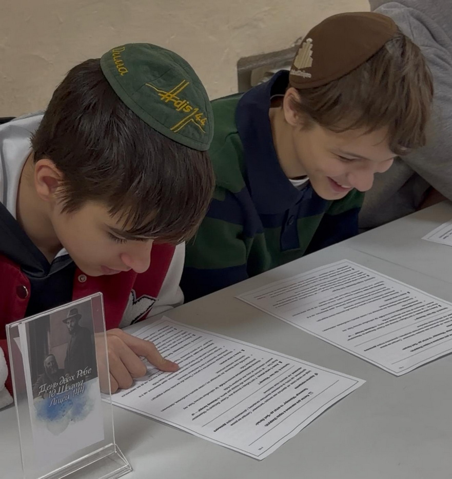 Для учеников 6-11 классов этот день стал временем сосредоточенных размышлений и практического осмысления того, как поддерживать живую связь с Ребе в современной жизни. Мероприятие началось с торжественного зажигания нер-нешама в память о Ребе Раяце и совместного изучения отрывков из Мишнайот, что настроило школьников на внутреннюю собранность и духовную глубину. Главной темой встречи стал вопрос личной связи с Ребе через учебу, молитву и конкретные действия. Старшеклассники занимались в формате хавруты, изучая идеи маамара «Боси ле-Гани», писали личные письма, которые учительница иврита Хая Нахшон должна передать на Оэль Ребе в Нью-Йорке, а также принимали на себя добрые решения, которые предстоит воплощать в повседневной жизни. Духовная часть естественно продолжилась фарбренгеном с нигуним, искренними разговорами и интеллектуальной викториной, во время которой ученики смогли проявить свои знания и получить памятные призы.