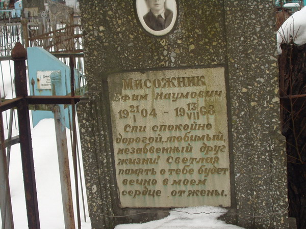 Блог / Кладбище / Мисожник Ефим Наумович Мисожник Ефим Наумович admin | 19 Shevat 5785 (17.02.2025) 0 Дата рождения: 1904-01-21 Дата смерти: 1968-07-13 № участка: 4М Ряд: 8 № захоронения: 9 Комментарии: