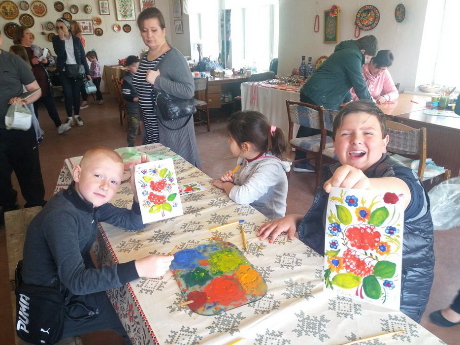 Младшие и старшие с большим интересом побывали в знаменитой Петриковке, не только увидели своими глазами как создается уникальная петриковская роспись, ставшая одним из символов украинской самобытности, но и смогли своими руками попробовать создать авторские работы в этом стиле.