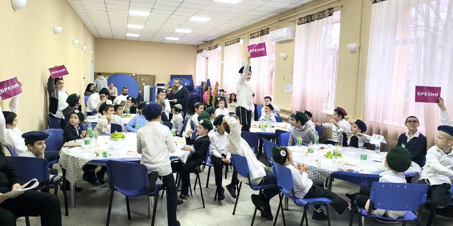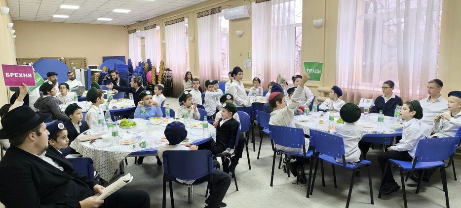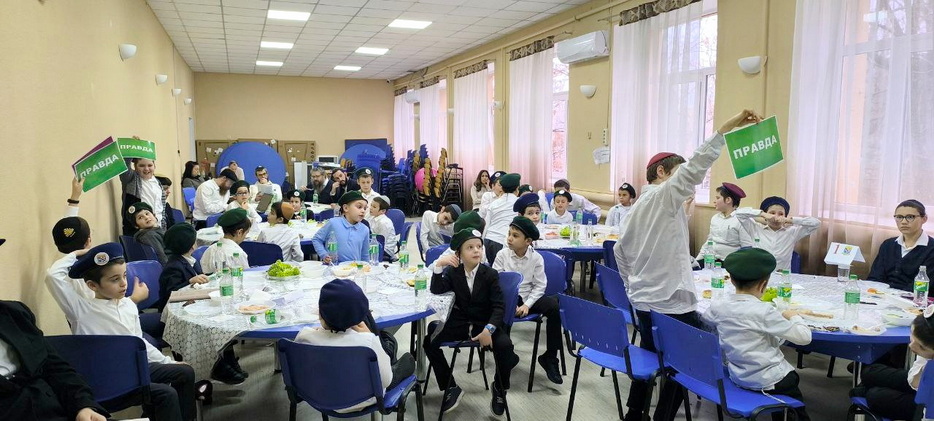 Праздничное мероприятие началось с общего сбора в зале, где воспитанников встретила приятная музыка и празднично украшенные столы, за которыми расселись команды. Торжественную атмосферу поддержал раввин Давид Васьковский, открывший мероприятие вступительным словом. Затем дети произнесли псуким, наполнив зал словами из святых текстов, и посмотрели вдохновляющее видео Ребе.