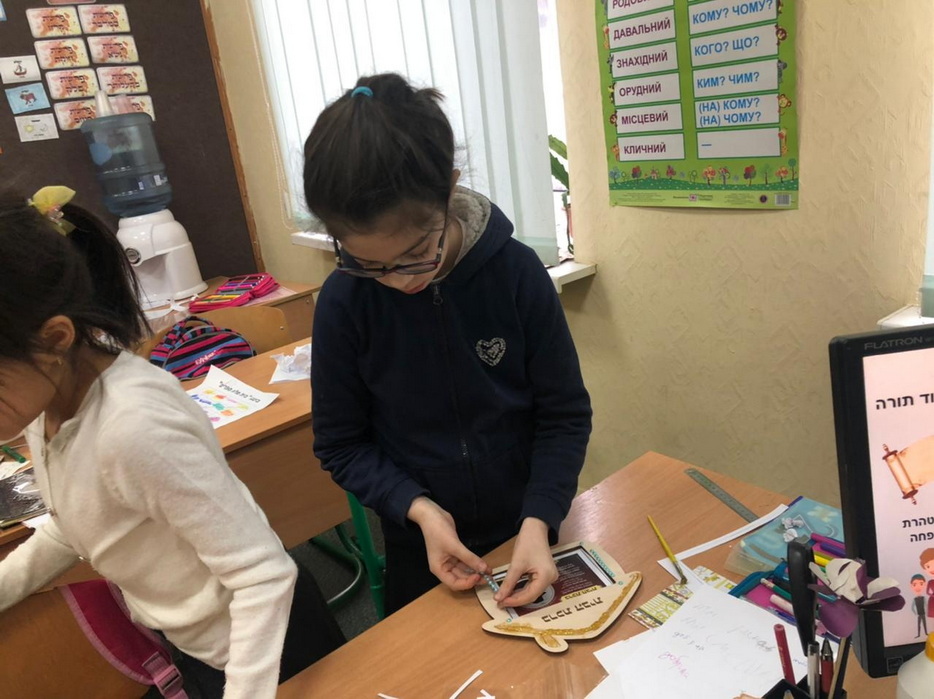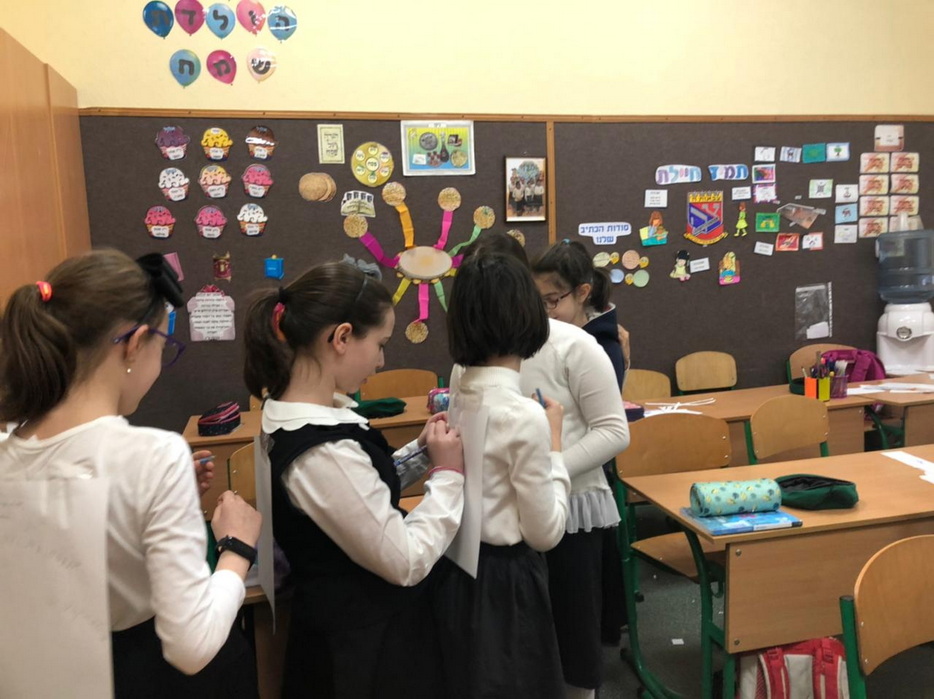 О том, как проходил этот день в махоне нашему сайту рассказала Эдна Юдович: «Для учениц младших классов темой программы стали 10 мивцоим (кампаний), которые учредил Ребе. Программа проходила в классах и для того, чтобы девочки смогли поучаствовать в мивцоим, им нужно было выполнять определенные задания. Это были игры, где нужно было проявить любовь к ближнему, просмотр видео Ребе, упаковка шабатних свечей, выполнение заповеди цдака – помощи бедным. Также ученицы младших классов проговорили новый 120-й капитул в честь Ребе (капитул – раздел из книги «Тегилим», тоже, что и «псалом» — djc.com.ua). Затем девочек пригласили в спортзал на кинус «Цивос Гашем». Там девочки увидели видео про «Цивос Гашем», спели 12 псуким и некоторые из девочек получили новые воинские звания в системе «Цивос Гашем» («Цивос Гашем», в буквальном переводе «Армия Вс-вышенего», всемирная детская организация, основанная Любавическим Ребе, использующая милитарную символику — djc.com.ua). В конце программы все ученицы младших классов украшали деревянную рамку с благословением для дома.