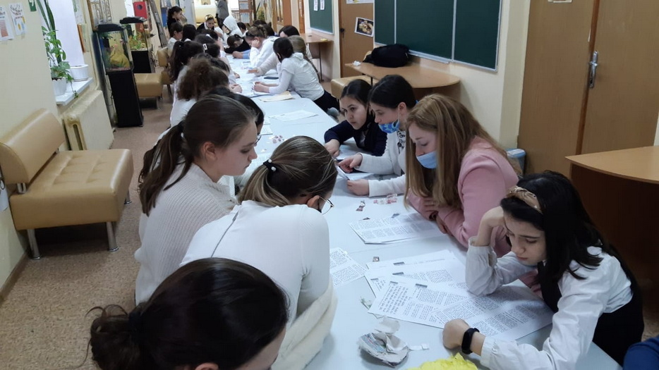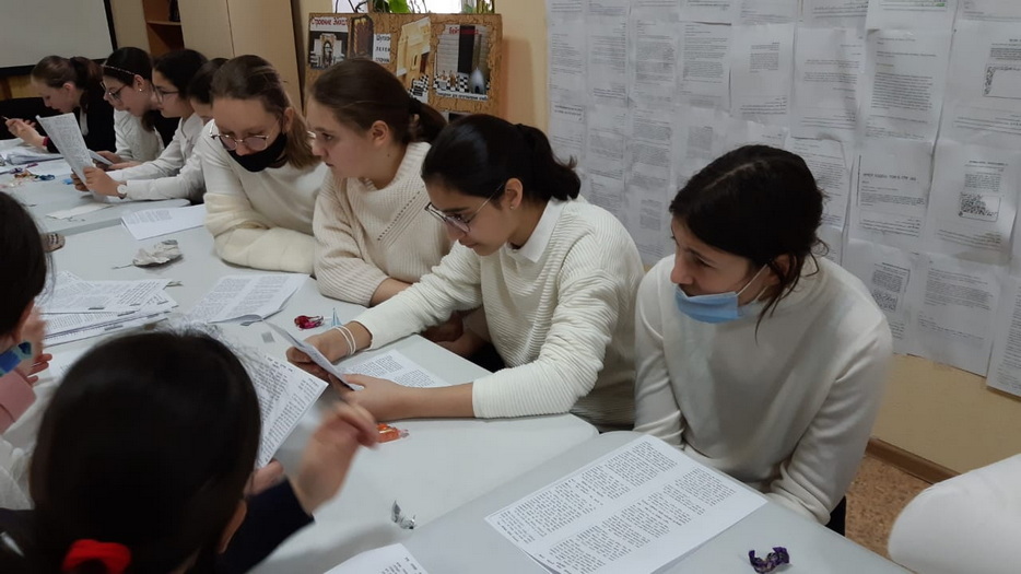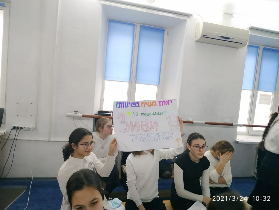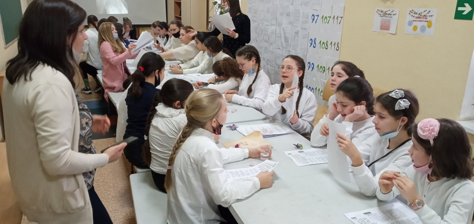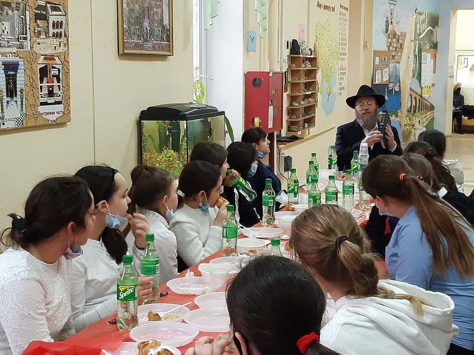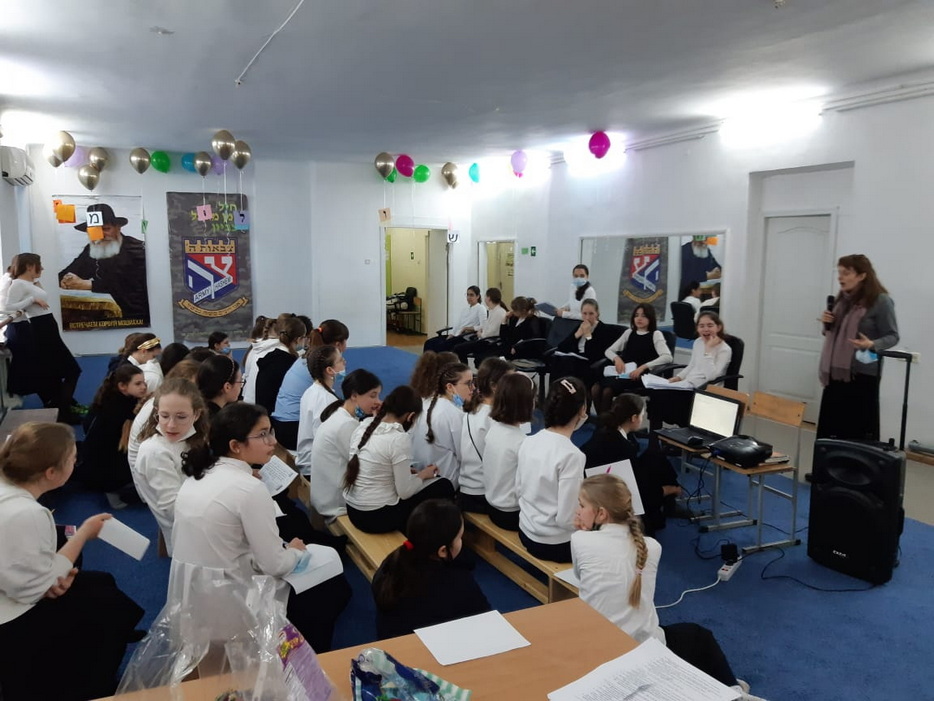 Для учениц старших классов была отдельная программа, которая началась изучением писем Ребе и таким образом девочки достигли своей цели, поставленной 1 Нисана, изучить 120 писем Ребе в честь дня рождения Ребе, причем ученицы старших классов изучили 60 писем на русском языке и 60 писем на иврите, которые затрагивали различные аспекты еврейской жизни. Затем девочки разбились по парам, чтобы изучить объяснение 120 капитула. Также все ученицы принимали участие в различных викторинах. Одна из них была посвящена устройству «Севен Севенти», другая – насколько хорошо девочки поняли объяснение 120 капитула, а третья была особенной. Во-первых, к этой викторине нужно было готовиться заранее, причем выучить ответы на 500 вопросов. Для этого выбиралась одна девочка из класса, которая готовилась к этой викторине, а все остальные поддерживали ее и помогали в подготовке. Во время самой викторины ведущий быстро зачитывал вопросы в течение одной минуты, а девочка должна была отвечать на них. Кто ответил на большее количество вопросов, тот и победил. Победительницей стала ученица 8 класса Зиви Смилянская и выиграла для класса поездку в квест-комнату. В конце программы всех ждал фарбренген с особым гостем – раввином Мойше Вебером, который рассказал много интересных историй о Ребе, а также подарил махону, только вышедшую книгу перевода бесед Шестого Любавического Ребе Йосефа-Ицхака Шнеерсона. Наша библиотека стала первой обладательницей нового издания книги.