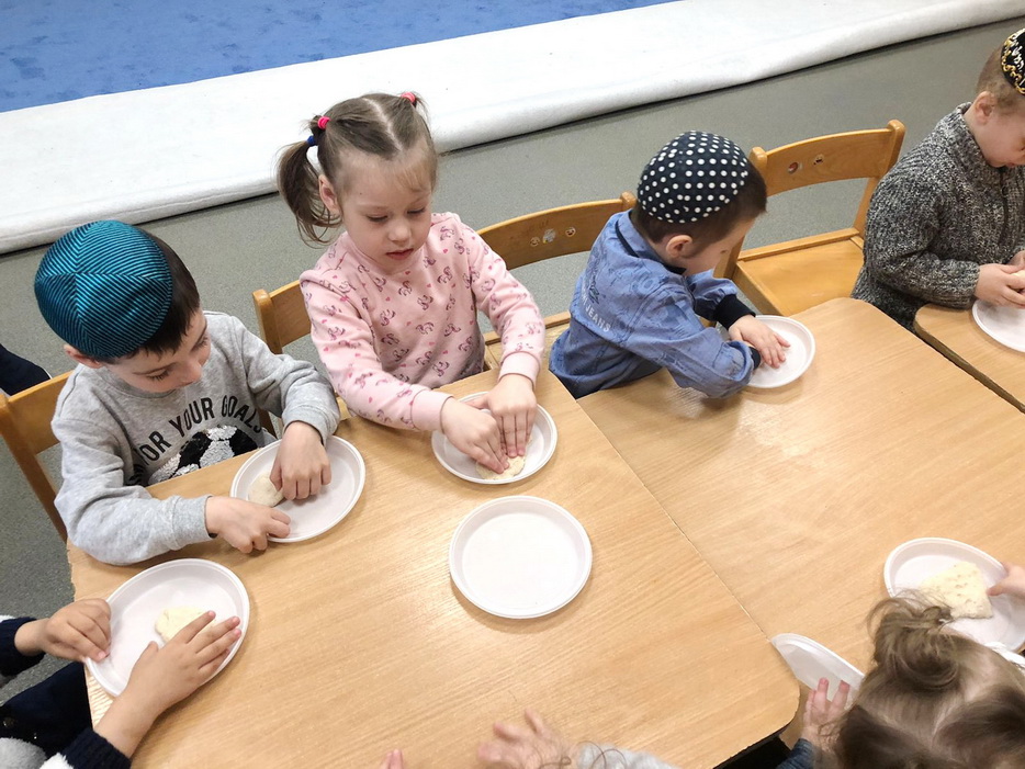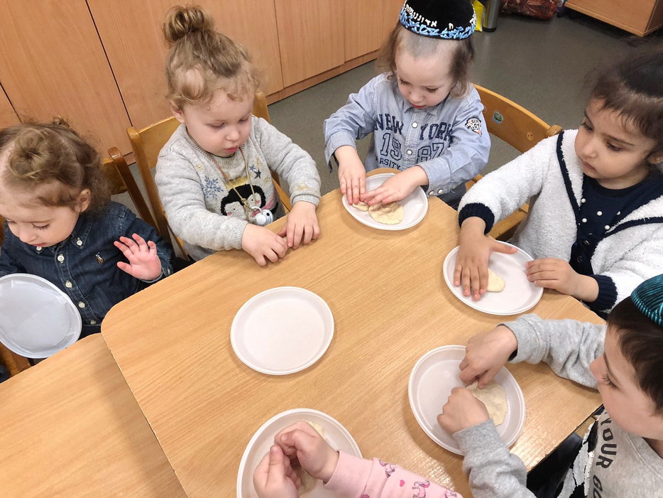 Кроме того, скоро наступает праздник Песах и наши малыши на занятии по лепке попробовали делать всамделишную мацу и дырочки в ней. Ведь маца, хлеб свободы, один из основных символов праздника Песах.