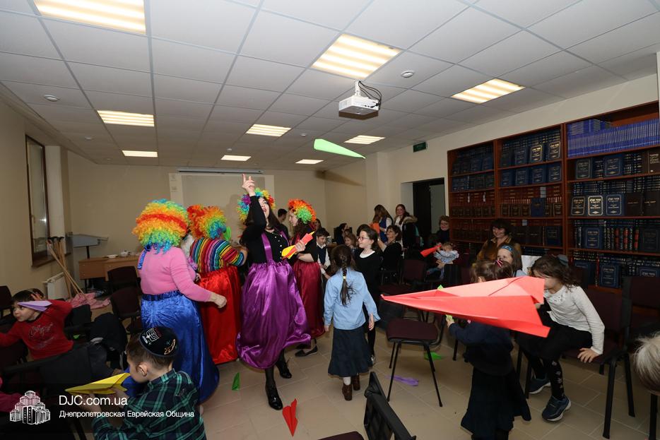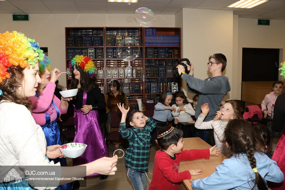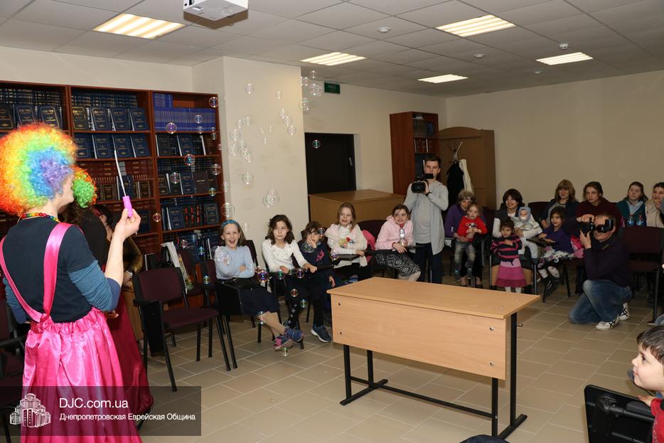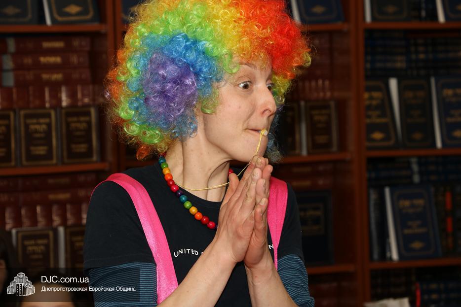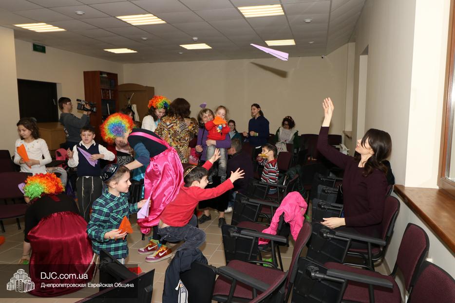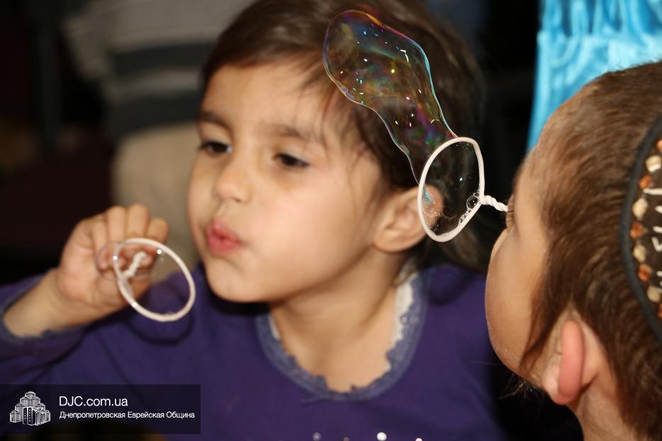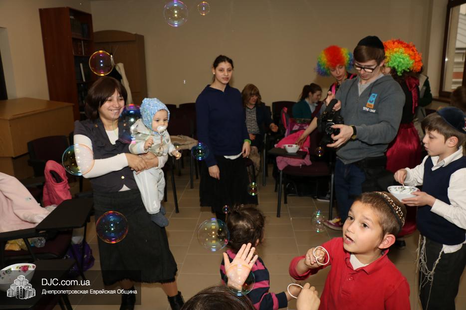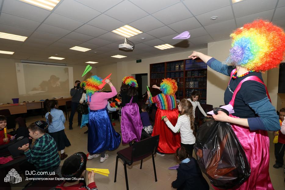 На мероприятие были приглашены еврейские дети и их мамы, для которых «Театр хасидских дам» подготовил очень яркую, разнообразную, насыщенную, веселую и до чрезвычайности позитивную программу. Здесь было все – и видео с Ребе, и веселые клоуны со свистками, и мыльные пузыри, и псуким, и даже бумажные самолетики – разноцветные, быстрые и веселые.