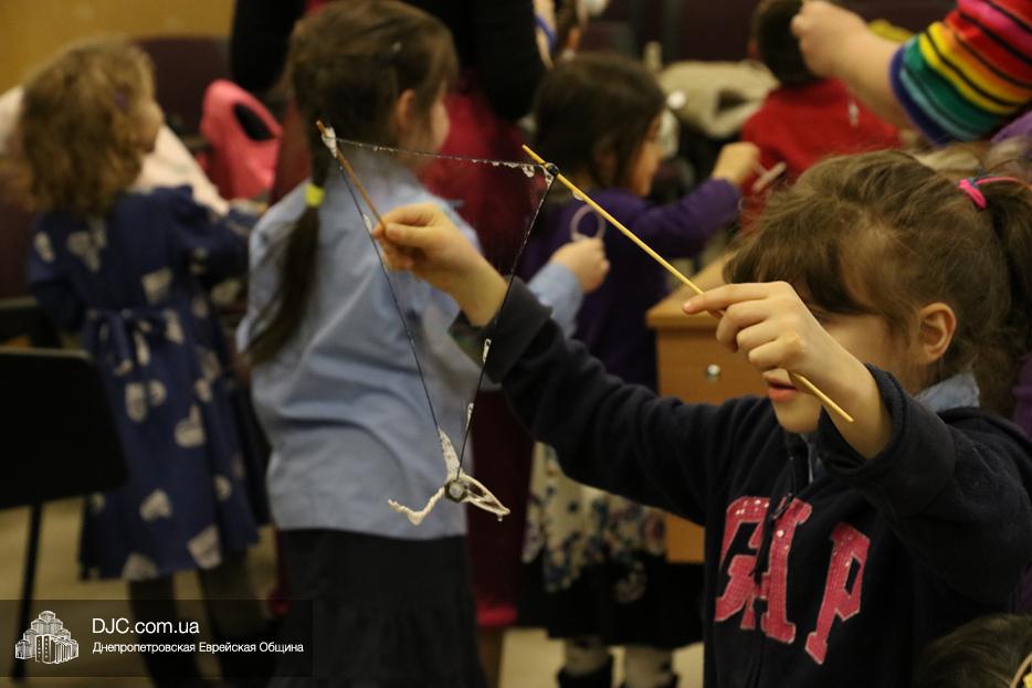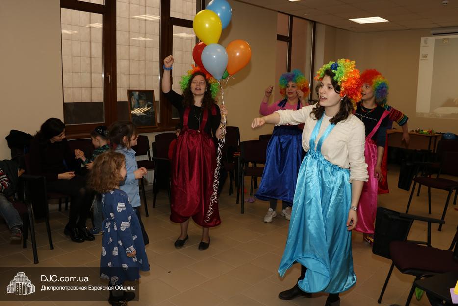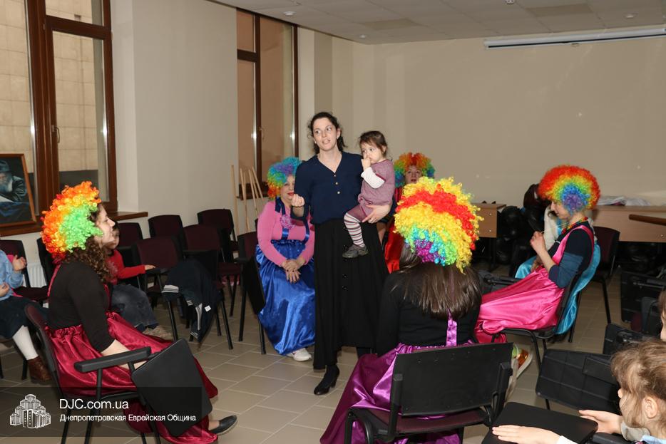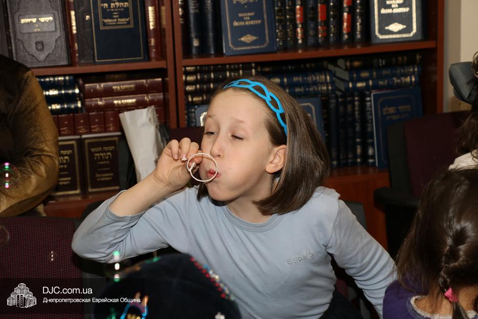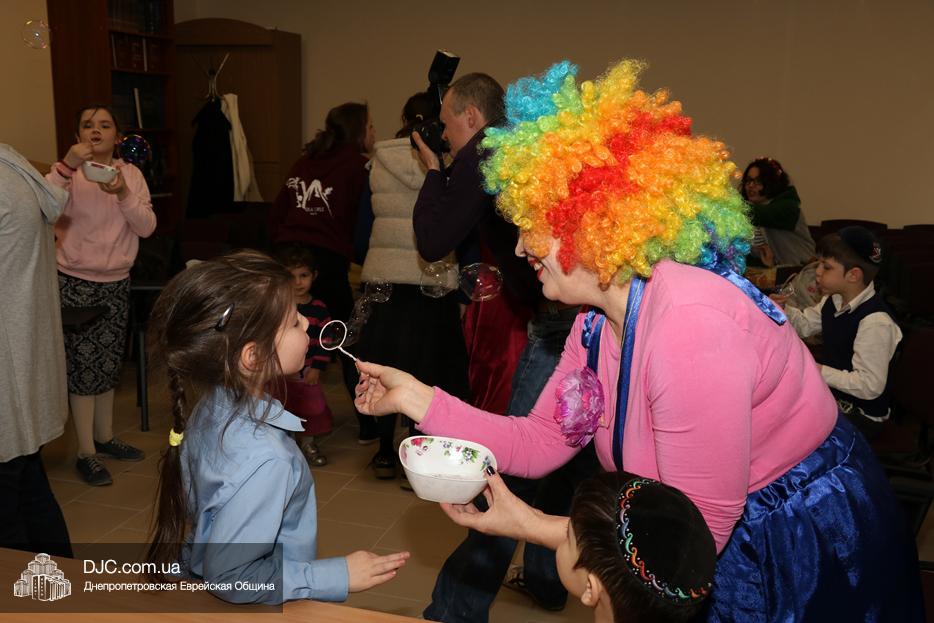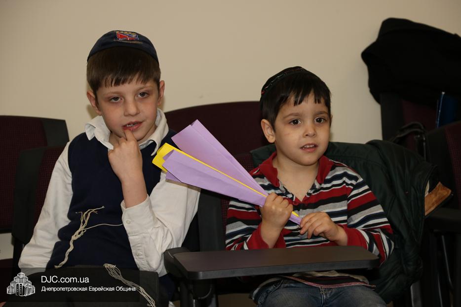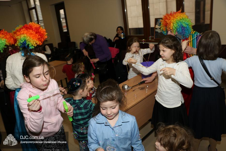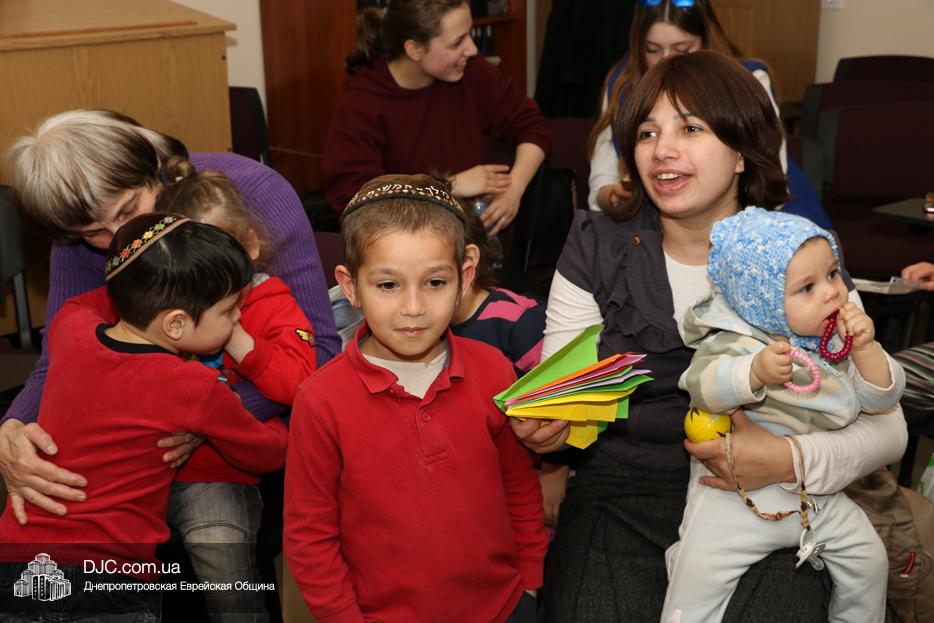 На мероприятие были приглашены еврейские дети и их мамы, для которых «Театр хасидских дам» подготовил очень яркую, разнообразную, насыщенную, веселую и до чрезвычайности позитивную программу. Здесь было все – и видео с Ребе, и веселые клоуны со свистками, и мыльные пузыри, и псуким, и даже бумажные самолетики – разноцветные, быстрые и веселые.