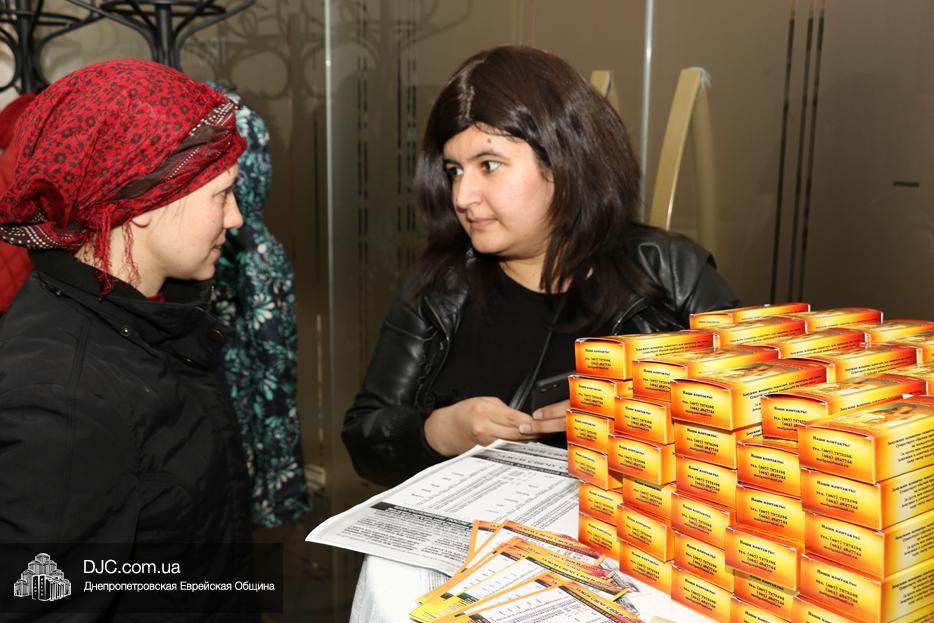 Лилах Цопа провела викторину с вопросами, которые затрагивали самый широкий круг еврейских тем, и каждый, кто дал правильный ответ на два вопроса, получал в подарок мацу-шмуру. Кроме того, для увеличения в заповеди о распространении света Шабатних свечей женщины могли получить специальные наборы.