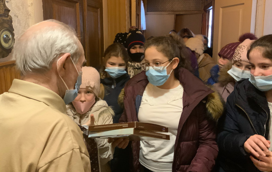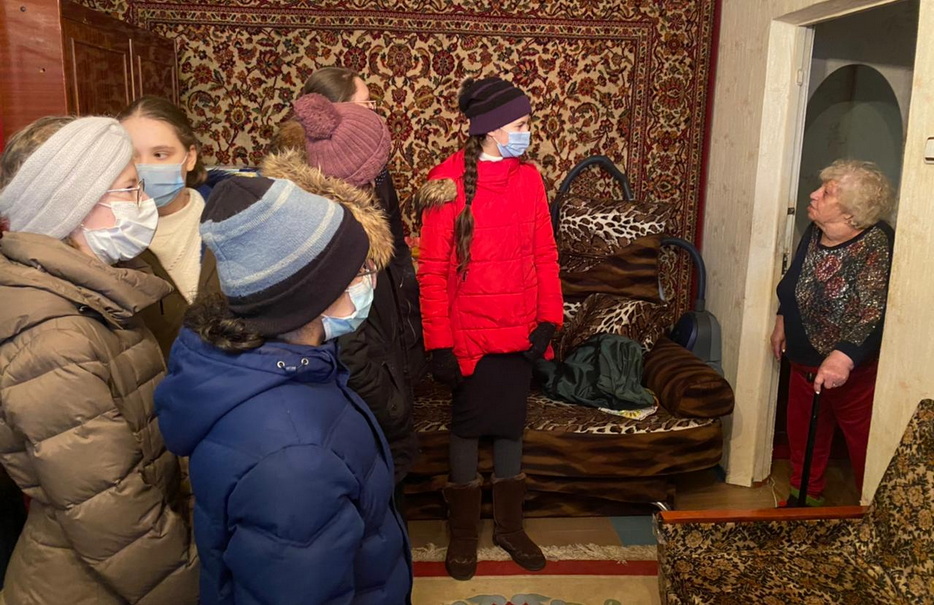 Девочки разделились на группы, и каждая отправилась по своему адресу. Например, группа девочек 5 класса, под руководством учителя Ирины Лазаревой, отправилась к ветерану Якову Абрамовичу Пинскому. «Мы не первый год навещаем этого достойного человека, – рассказала нашему сайту Ирина Лазарева, – раньше мы посещали его, как и других ветеранов, в канун 9 мая, и я даже писала об этом статью в газете «Шабат Шалом» (№ 6 (317) за июнь 2019 года