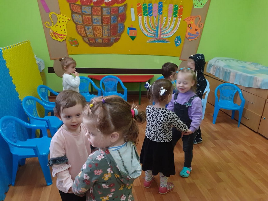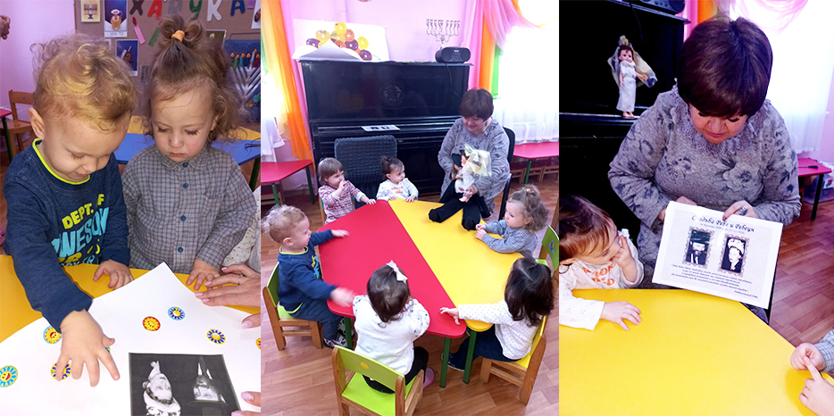 «Мы с детками отметили 14 Кислева – день свадьбы Ребе Менахема-Мендела Шнеерсона и его супруги ребецн Хаи-Мушки, – рассказала нашему сайту Двора Фурлендер, руководитель программ еврейского компонента, – вместе с преподавателем еврейских традиций Рахель Виноградовой малыши рассматривали портреты Ребе и ребецн, знакомились с ними, слушали нигуны и танцевали.