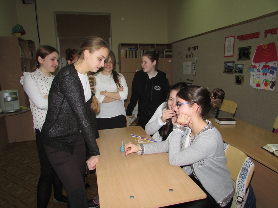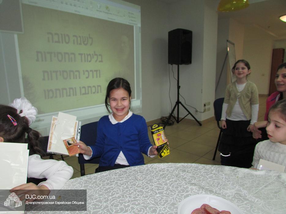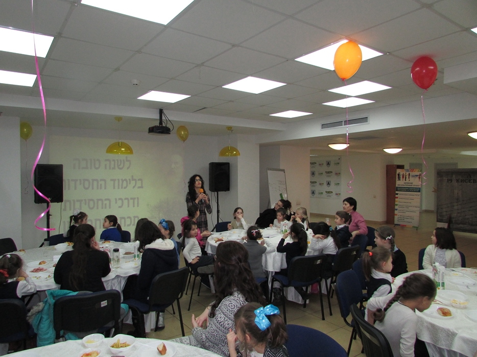 Дальше все классы отправились в путешествие по станциям – каждый класс должен был пройти 5 станций, а каждая станция была посвящена определенной теме: изучению Тании, еврейским танцам, биографии Алтер Ребе, ориентированию по книге Тания, распространению хасидута. На каждой станции девочек ждали увлекательные и познавательные викторины, задания, сюрпризы. Выполнив определенное задание на станции, каждый класс получал часть от пазла, но общая картинка сложилась из этих кусочков позже – на вечернем мероприятии.
