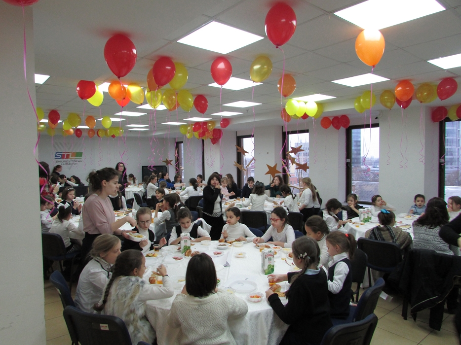 А пока все ученицы махона вместе с учителями оправились в центр «Менора» для проведения фарбренгена, который состоялся на восьмом этаже, в помещении «Шиурей Тора Любавич», где девочек ожидали красиво украшенные столы и замечательная трапеза.