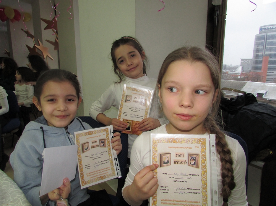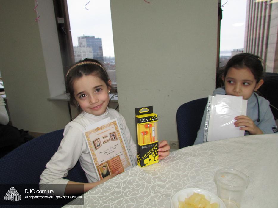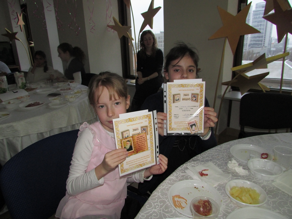 — те, кто выучил от 1 до 10 строк, получили в награду дипломы и брелоки с изображением Алтер Ребе;