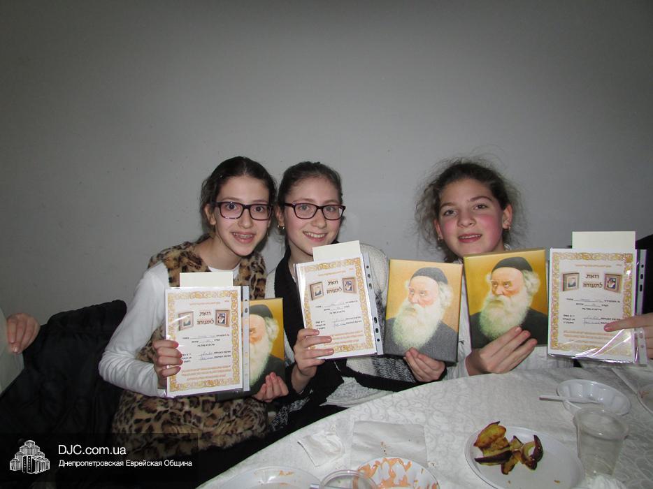 — те, кто выучил 20 и более строк Тании, получили дипломы и изображение Алтер Ребе на холсте.