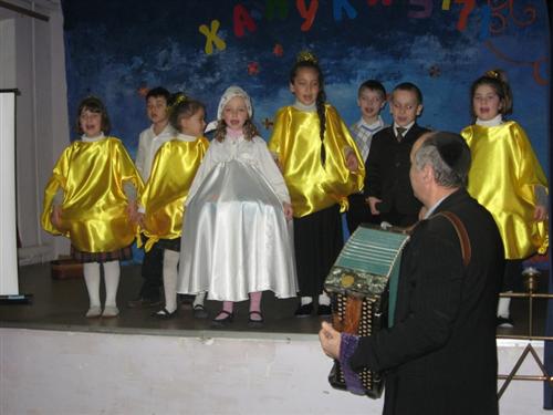 Традиционное зажжение ханукальных огней в еврейской школе Днепропетровска «Ор Авнер Хабад-Любавич» им. Леви-Ицхака Шнеерсона прошло в актовом зале, и, как всегда, дети подготовили небольшое ханукальное представление для своих соучеников.
