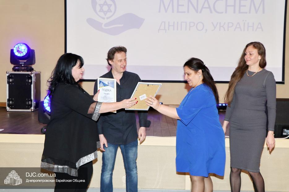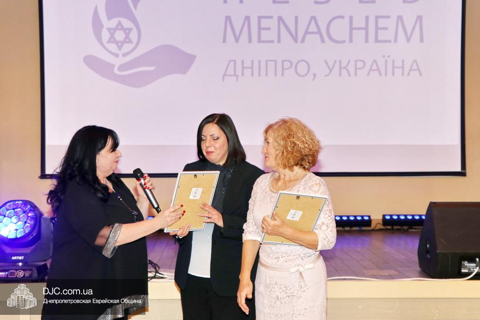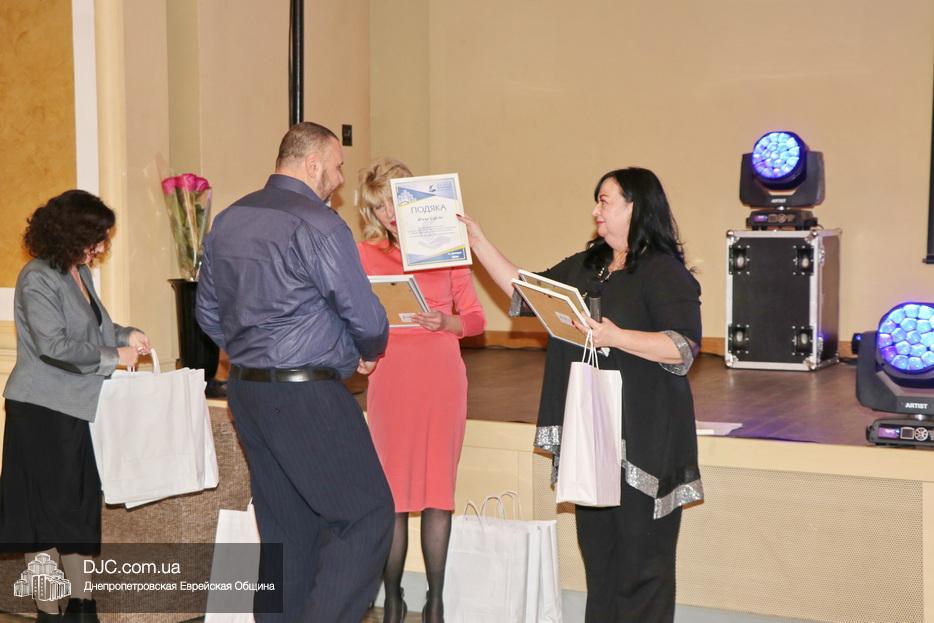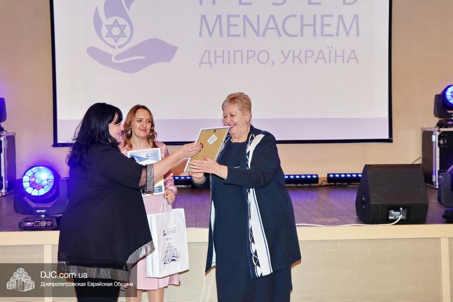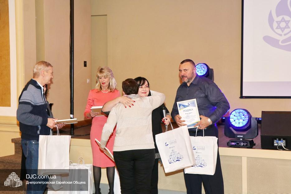 Затем исполняющая обязанности директора Виктория Новоселова вручила памятные доски сотрудникам Хеседа, а руководитель программы «Волонтер» Любовь Кисс и координатор «Джойнт Украины» Анжела Лоцман вручили награды активистам и волонтерам Хеседа.