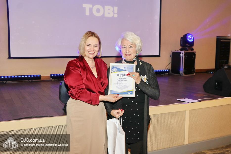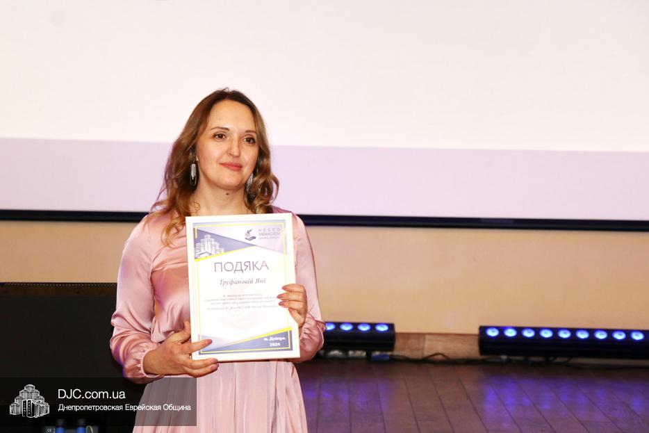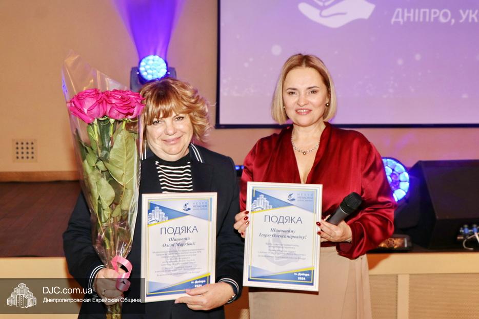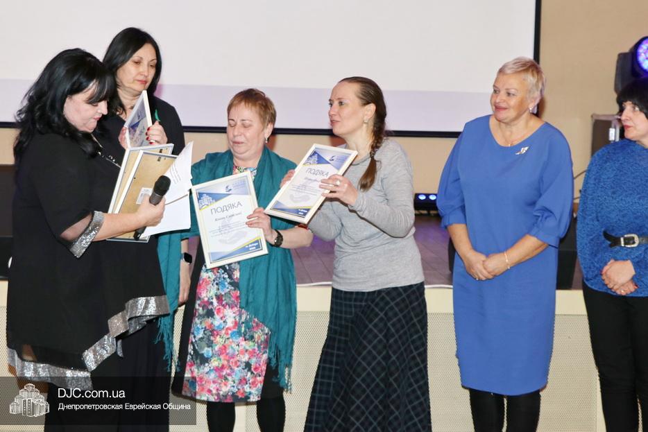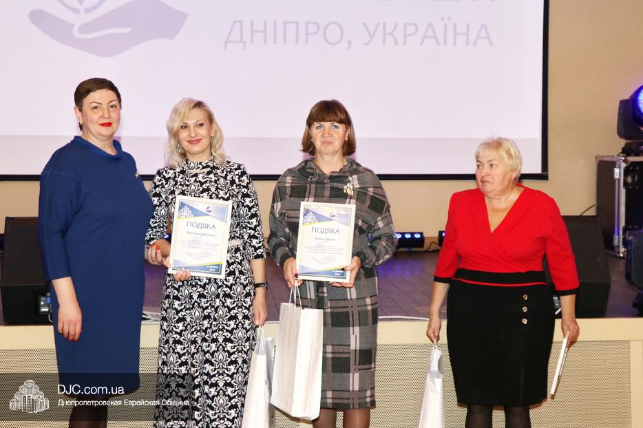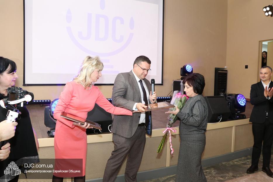 Затем исполняющая обязанности директора Виктория Новоселова вручила памятные доски сотрудникам Хеседа, а руководитель программы «Волонтер» Любовь Кисс и координатор «Джойнт Украины» Анжела Лоцман вручили награды активистам и волонтерам Хеседа.