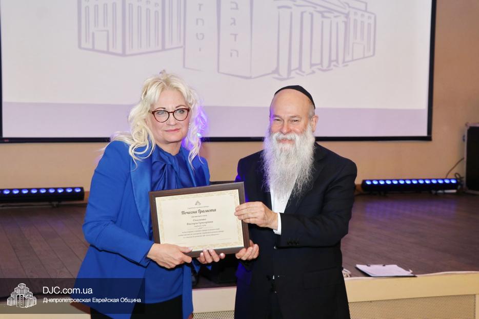 Главный раввин Днепра и региона Шмуэль Каминецкий подчеркнул важность Хеседа для еврейской жизни и тепло поблагодарил всех сотрудников, которые вкладывают душу в дело помощи нуждающимся, и от имени Еврейской общины Днепра вручил почетные грамоты тем, кто проработал в Хеседе более восемнадцати лет (ибо число 18 в еврейской традиции символизирует слово «хай», то есть «жизнь»).