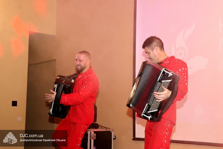Особую атмосферу этого мероприятия создавали: дуэт аккордеонистов «Монте Карло», вокальный дуэт солистки «Дома органной музыки» Зинаиды Чепа и ее отца Игоря Чепы, а также авторская песочная анимация Светланы Фляшиной, а весь седер встречи, включая «лехаим», модерировал Виталий Азаров.