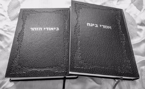 Новые издания «Биурей ха-Зоар» (слева) и «Имрей Бина» (справа), первоначально опубликованные раввином Дов-Бером из Любавич в 1816 и 1821 годах соответственно.