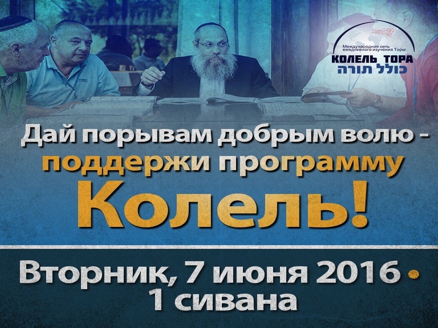 Программа еврейского образования для взрослых «Колель Тора» объявила о намерении провести в течение 24 часов 7 июня (Рош Ходеш месяца сиван) массовый сбор средств для нужд программы. Фандрайзинг будет осуществляется онлайн, с использованием современных технологий, и принять в нем участие смогут как физические, так и юридические лица.