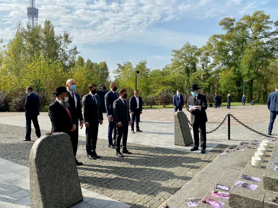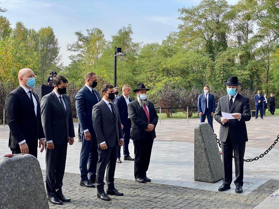 В 79-ю годовщину начала расстрелов нацистами евреев Киева в Бабьем Яру высшее руководство государства Украина – Президент Украины Владимир Зеленский, премьер-министр Денис Шмыгаль, председатель Верховной Рады Дмитрий Разумков, совместно с руководителями Федерации еврейских общин Украины председателем Совета ФЕОУ раввином Меиром Стамблером и заместителем председателя ФЕОУ Рафаэлем Рутманом приняли участие в поминальной церемонии у мемориала «Менора».