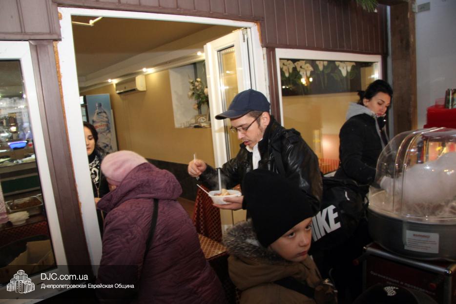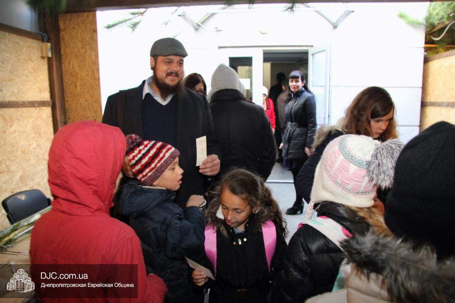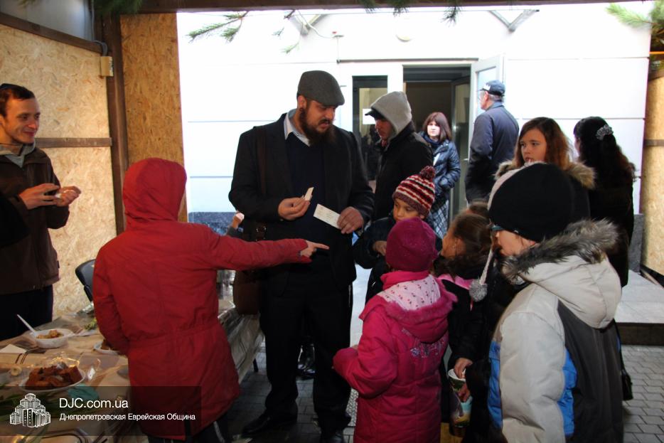 «Нет никаких ограничений по возрасту, полу или социальному положению, – рассказал Залман Бухиник, – каждому еврею или еврейке, кто выполнит заповедь «нетилат лулав» на нашем посту – мы предлагаем талончик на это угощение, дабы побудить их сразу выполнить заповедь «вкушать трапезу в сукке». Мы ждем всех евреев Днепра в шалаше Центральной синагоги «Золотая Роза»!».