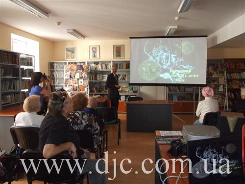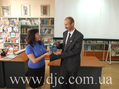 В заключение Александр Прокофьев призвал всех принимать активное участие в деятельности кружка астронумизматов при днепропетровском Планетарии, посещать лекции и занятия, организованные Планетарием, а Елена Левикова, заведующая библиотекой ЕОЦ, вручила гостю в качестве памятного подарка книгу Меира Шалева «Русский Роман» в издании чейсовской коллекции.