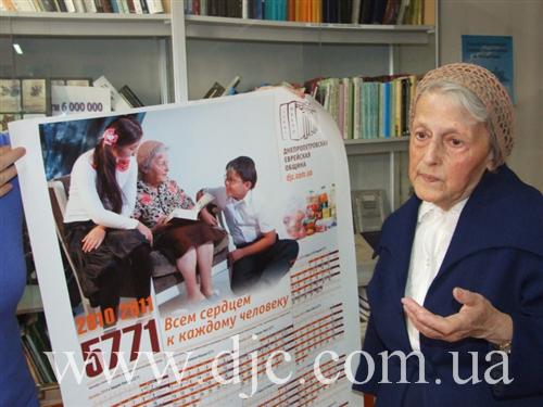 Но встреча началась, как всегда, с вдохновенной импровизации самого маэстро Олега Карпова и со стихов Валентины Абрамовны Трахтман, которая в этом году стала официальным «лицом» еврейской общины Днепропетровска – именно ее фотопортрет в окружении еврейских детей, которым она читает вслух, изображен на календаре, выпущенном еврейской общиной к новому 5771 году.