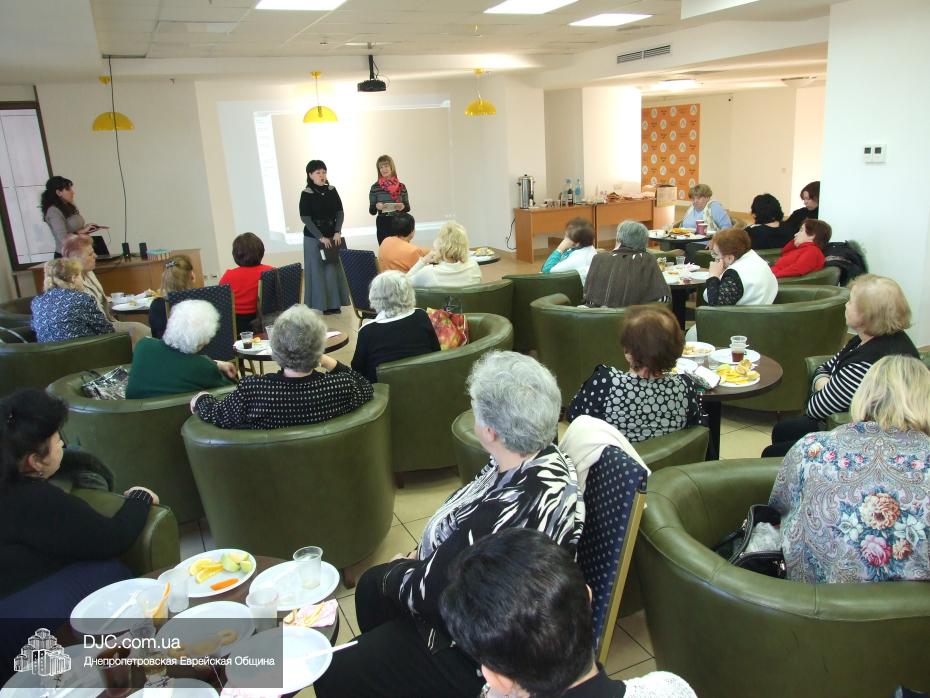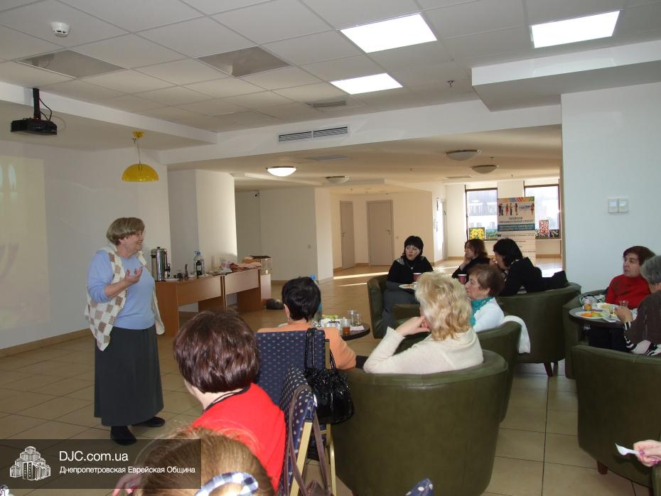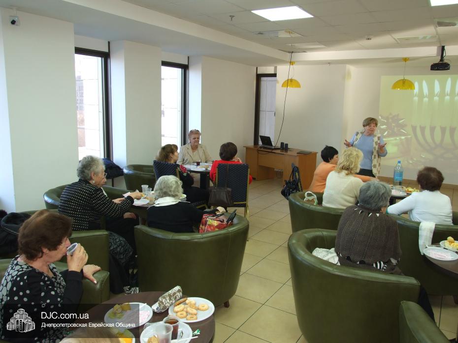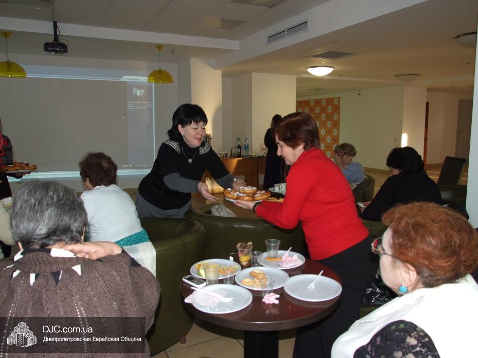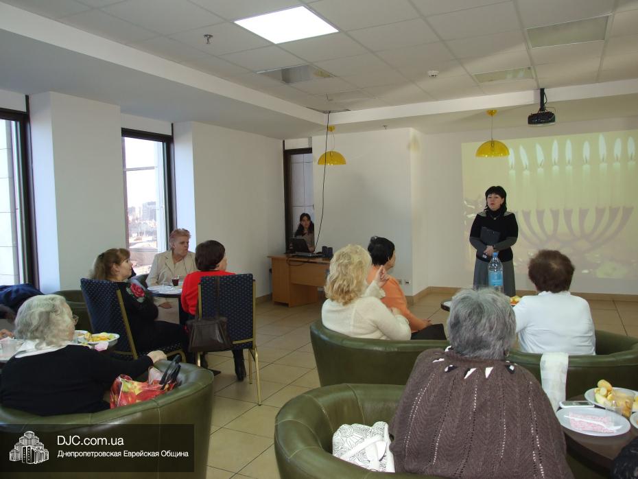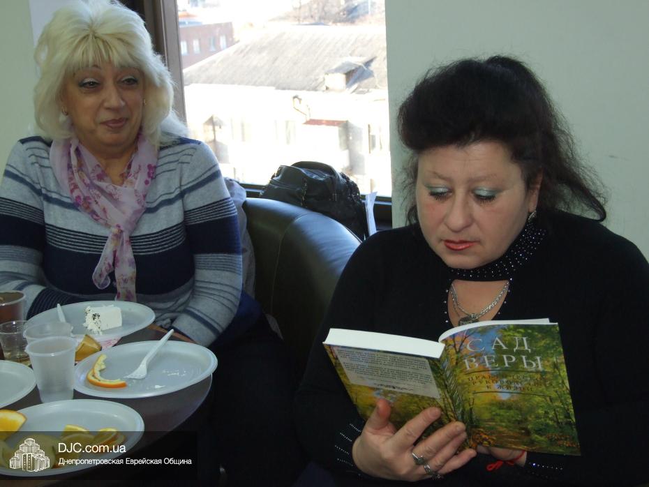 Встреча началась нестандартно – с чествования именинниц прошедшего месяца (как правило, эта «страничка» заседания является завершающим этапом встречи). Теплыми словами поздравлений клуб поздравил женщин, отмечавших свой День рождения в месяце Хешван – Хану Заманскую, Нелу Ципкину и одну из руководительниц клуба Сару Гомберг. В соответствии с доброй традицией, именинниц поздравили кошерным праздничным тортом, а также каждой из них было предоставлено слово. Завершая череду выступлений, Сара Гомберг рассказала о том, что это праздничное заседание «Баалей Тшува» для нее – прощальное, ибо она в самое ближайшее время, в дни Хануки, совершает алию в Эрец-Исраэль. Сара Гомберг, как именинница, взяла на себя обязательство – постараться в ближайший год создать в Израиле клуб или объединение, которое, как и днепропетровский «Баалей Тшува», будет приближать еврейских женщин к еврейству, объединяя и тех, кто ищет, и тех, кто уже нашел путь к свету идишкайт.