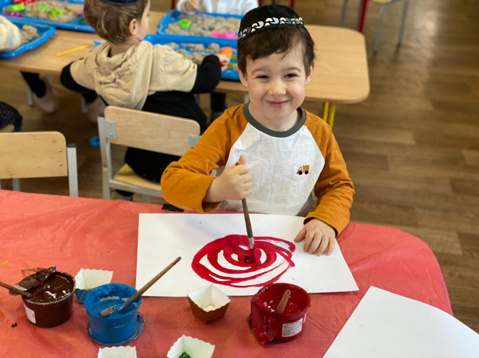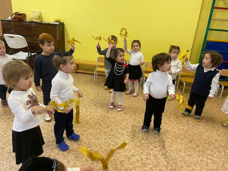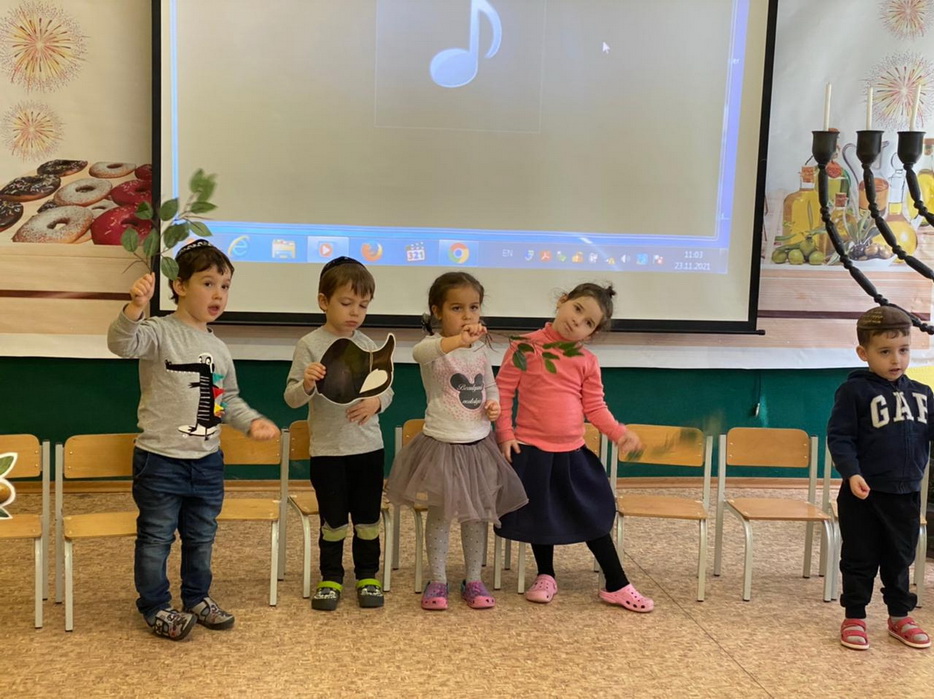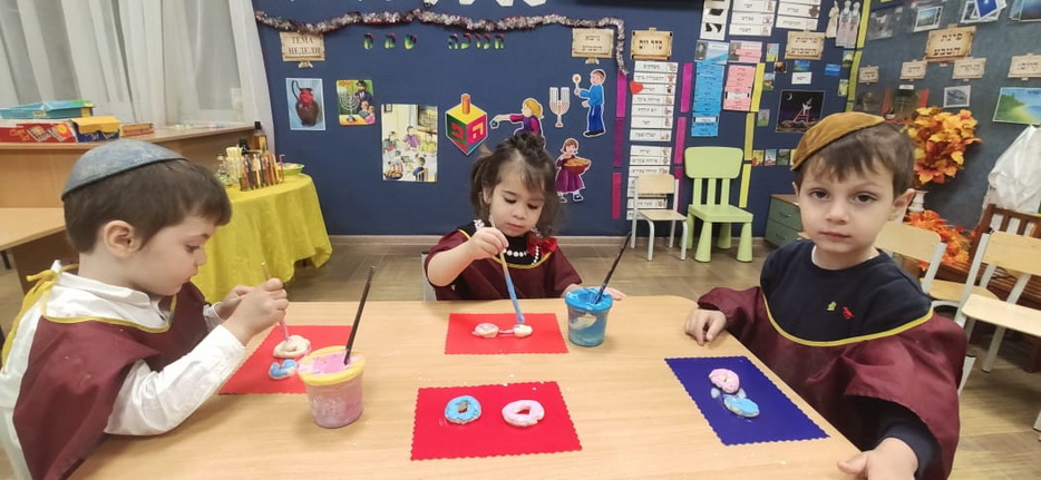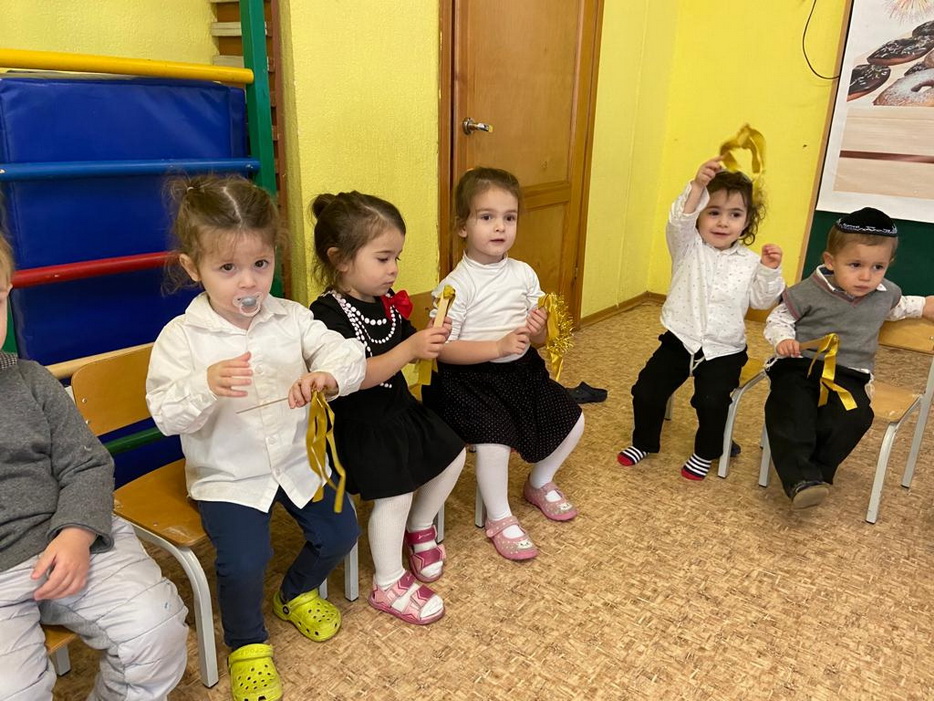 Также много времени на занятиях уделяется истории и обычаям Хануки, малыши знакомятся с ее атрибутами и играми, слушают рассказы о чуде Хануки. Если вы зайдете в любую группу, уже везде есть ханукальные украшения и атрибуты, в каждом сантиметре нашего садика чувствуется Ханука.