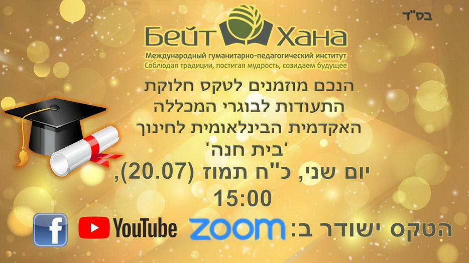 Международный гуманитарно-педагогический институт «Бейт Хана» объявил о проведении выпускного в этом году в формате онлайн и приглашает на него всех своих друзей, выпускниц разных лет из всех стран мира.