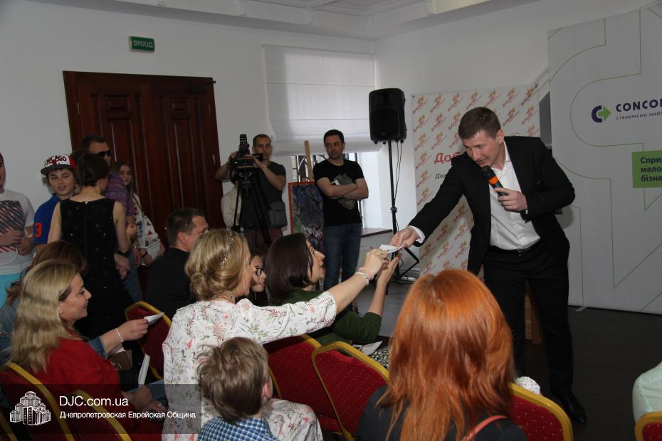 В Днепре прошел первый благотворительный аукцион живописных полотен, 100% средств от которого направляются для лечения детей, больных лейкозом (рак крови). Аукцион был организован биржей «ДоброДій», и его проведение было поддержано городским головой Борисом Филатовым, а Главный раввин Днепра Шмуэль Каминецкий передал ему ряд картин из своей коллекции, со специальным благословением.