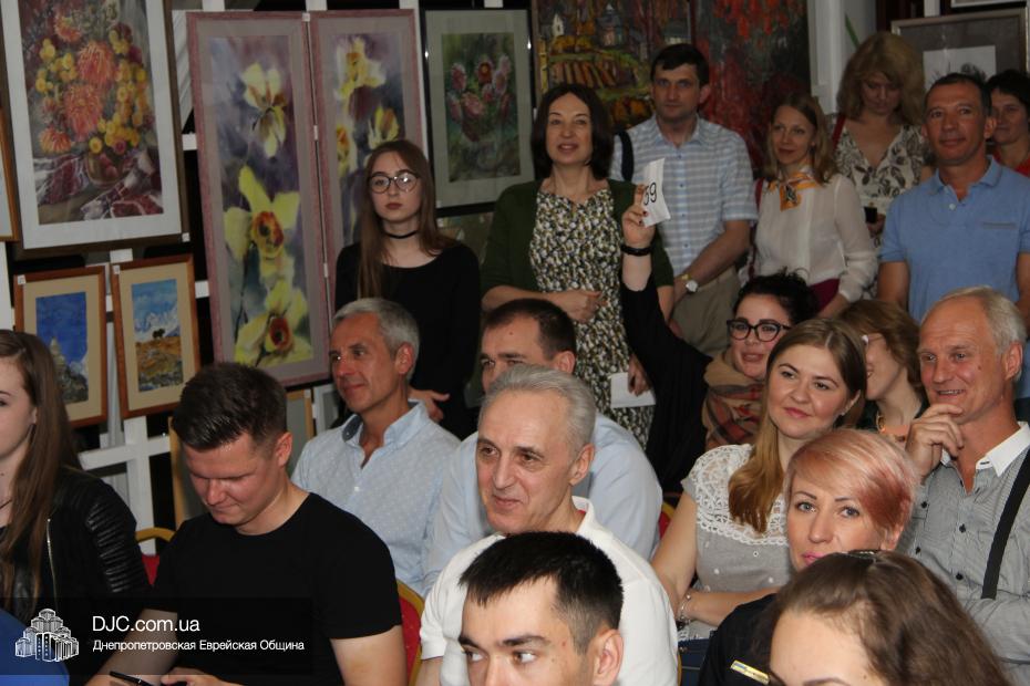 Картины, предоставленные для аукциона Главным раввином Днепра Шмуэлем Каминецким, были им подписаны с благословением для семьи и бизнеса тех, кто будет ими владеть, и многие захотели иметь и художественный артефакт, и браху от духовного лидера нашей общины. Как сообщили организаторы аукциона после его завершения, из переданных раввином произведений искусства было продано 5 картин и одно фото, а абсолютный рекорд стоимости установил «Портрет Любавического Ребе», который был продан за 21 700 гривен.