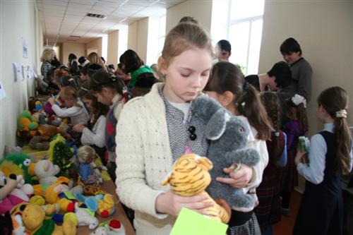 С большим энтузиазмом дети приняли участие в благотворительной ярмарке, на которой были представлены и игрушки, и наборы цветных карандашей, и другие привлекательные канцтовары, и много других вещей, радующих детские сердца.