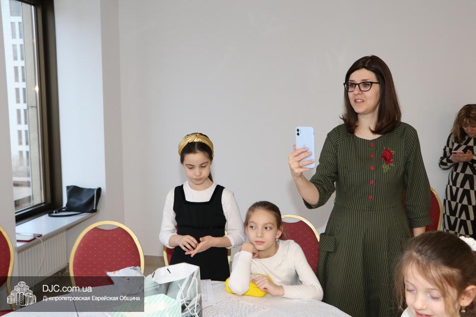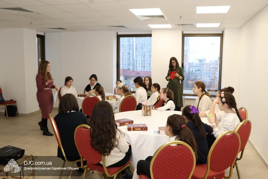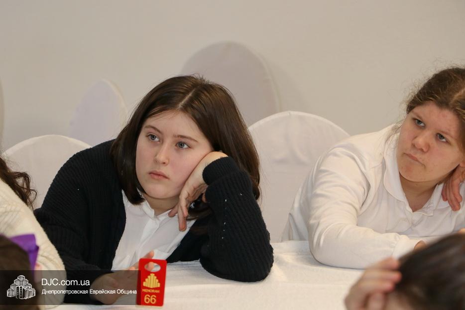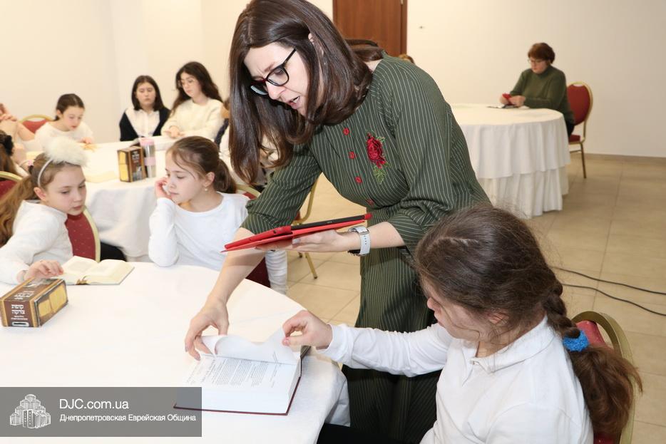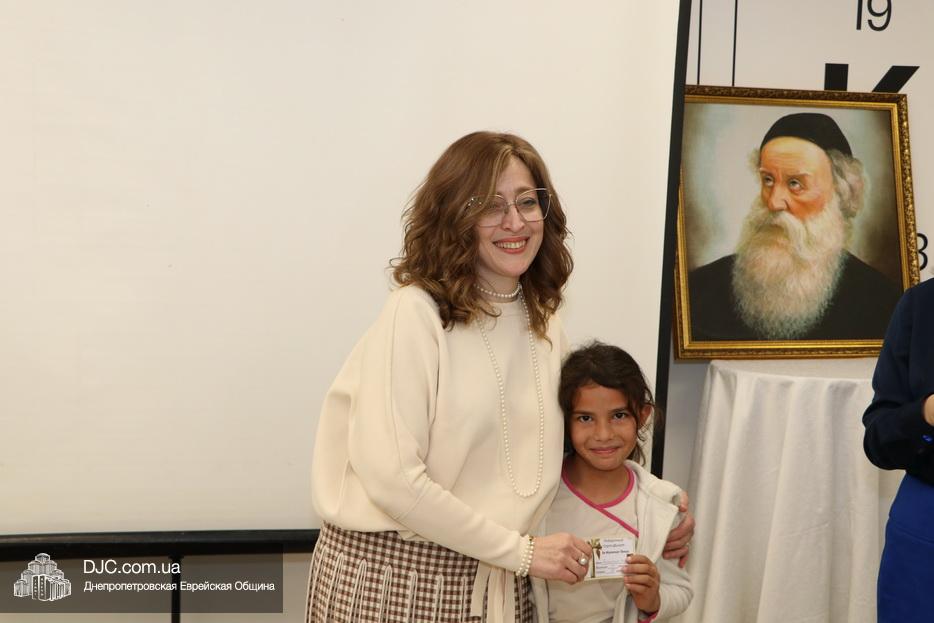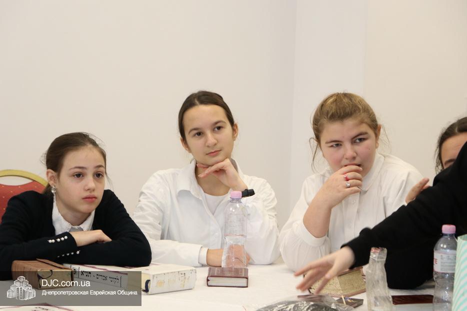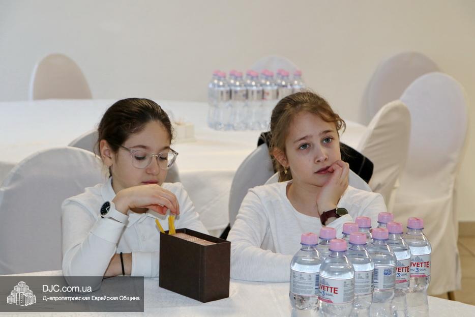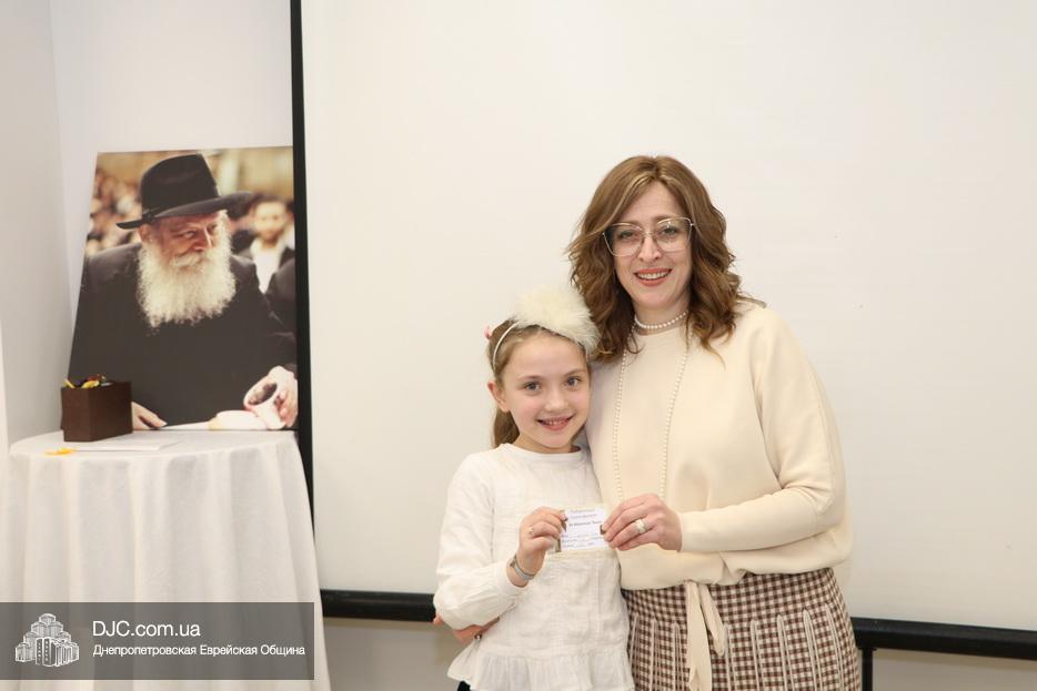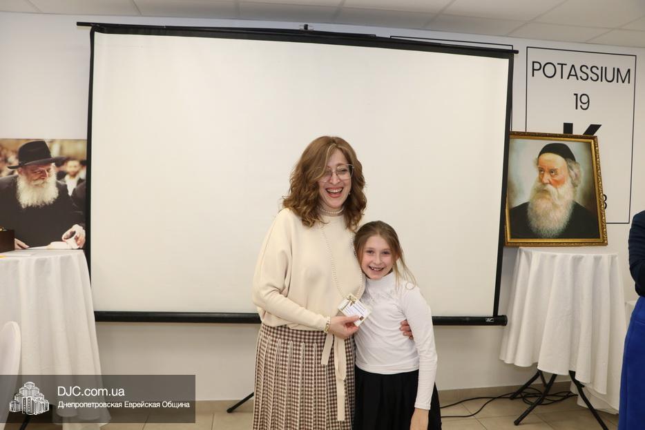 Затем состоялся настоящий хасидский фарбренген с вкусной и кошерной едой, а специальным гостем праздника стала ребецн Хана Каминецкая, рассказавшая девочкам историю о том, как они с ее супругом, Главным раввином Днепра реб Шмуэлем Каминецким, начинали свой посланнический путь в нашем городе в далеком 1990 году.