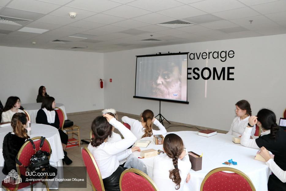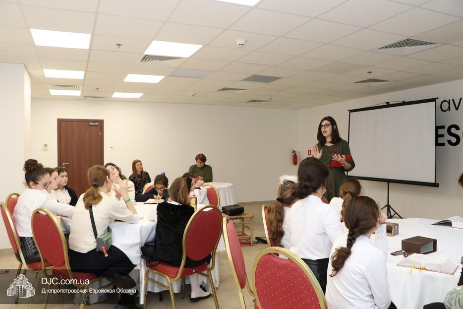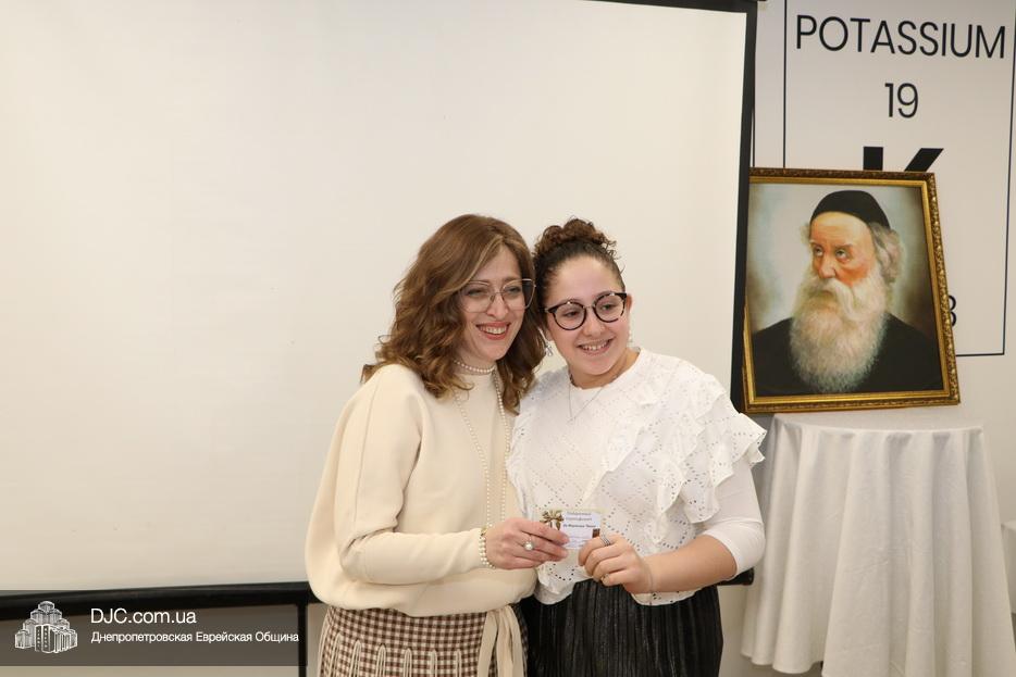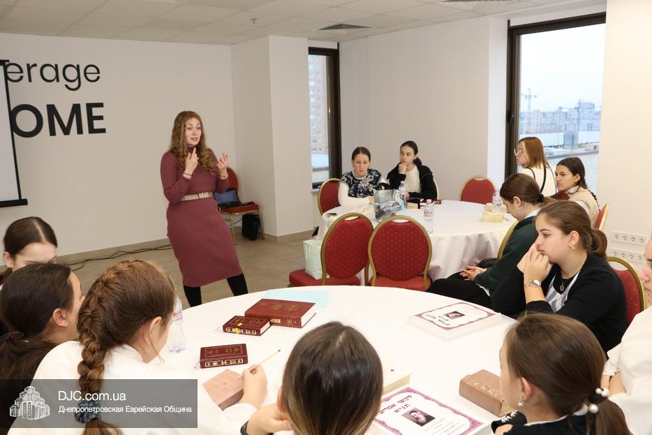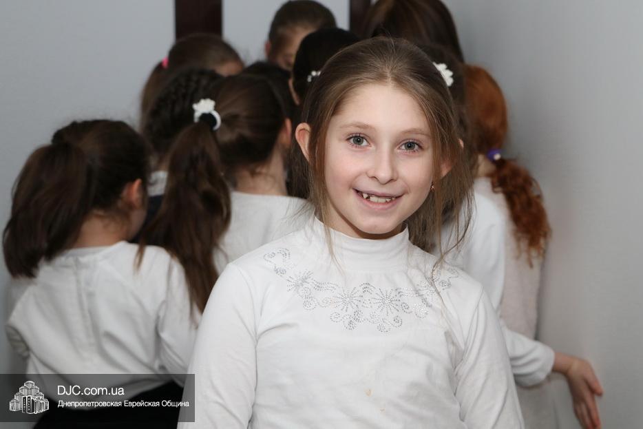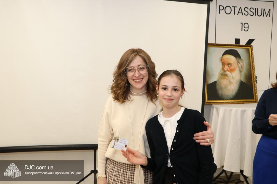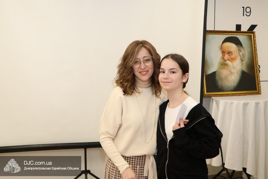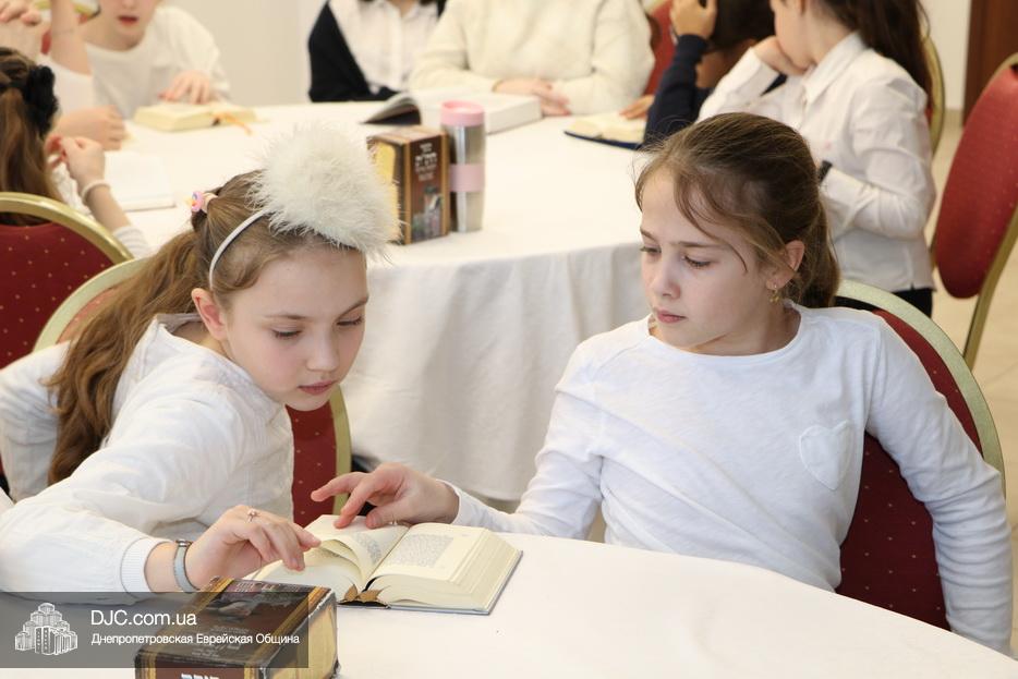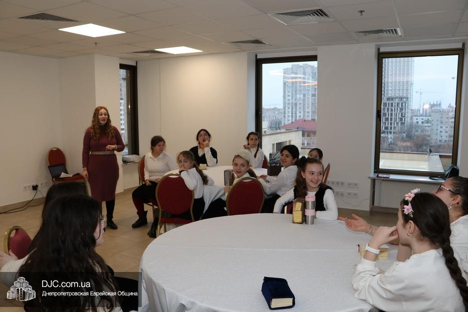 Затем состоялся настоящий хасидский фарбренген с вкусной и кошерной едой, а специальным гостем праздника стала ребецн Хана Каминецкая, рассказавшая девочкам историю о том, как они с ее супругом, Главным раввином Днепра реб Шмуэлем Каминецким, начинали свой посланнический путь в нашем городе в далеком 1990 году.