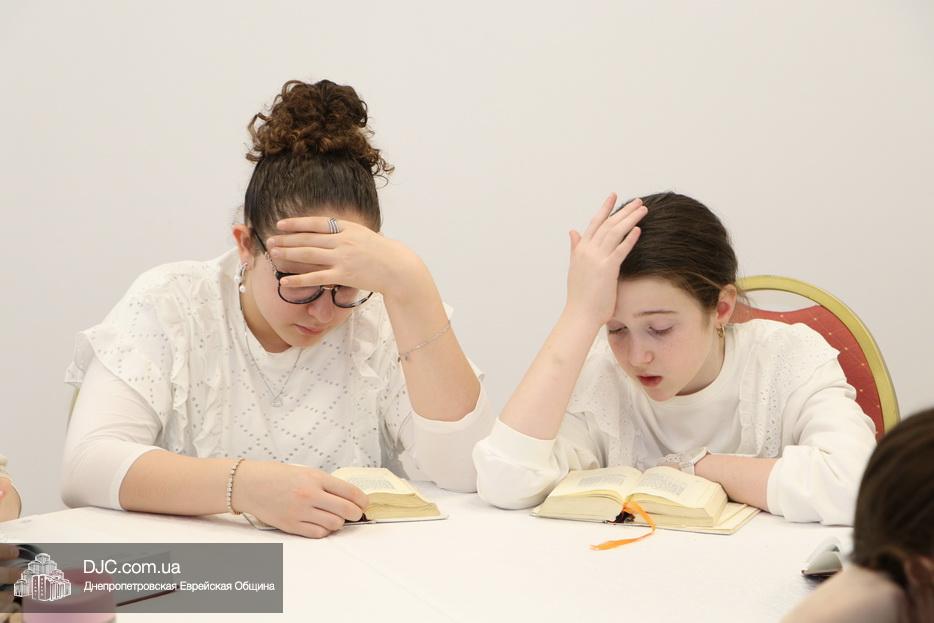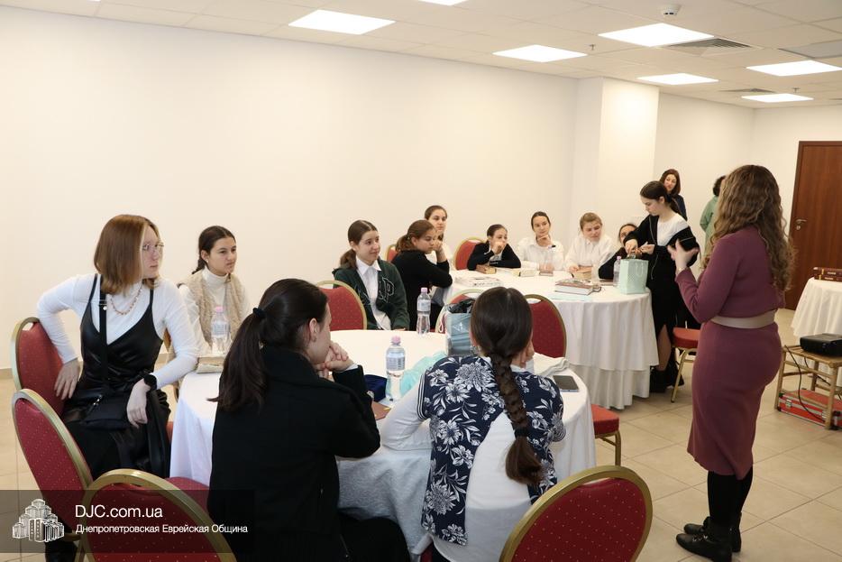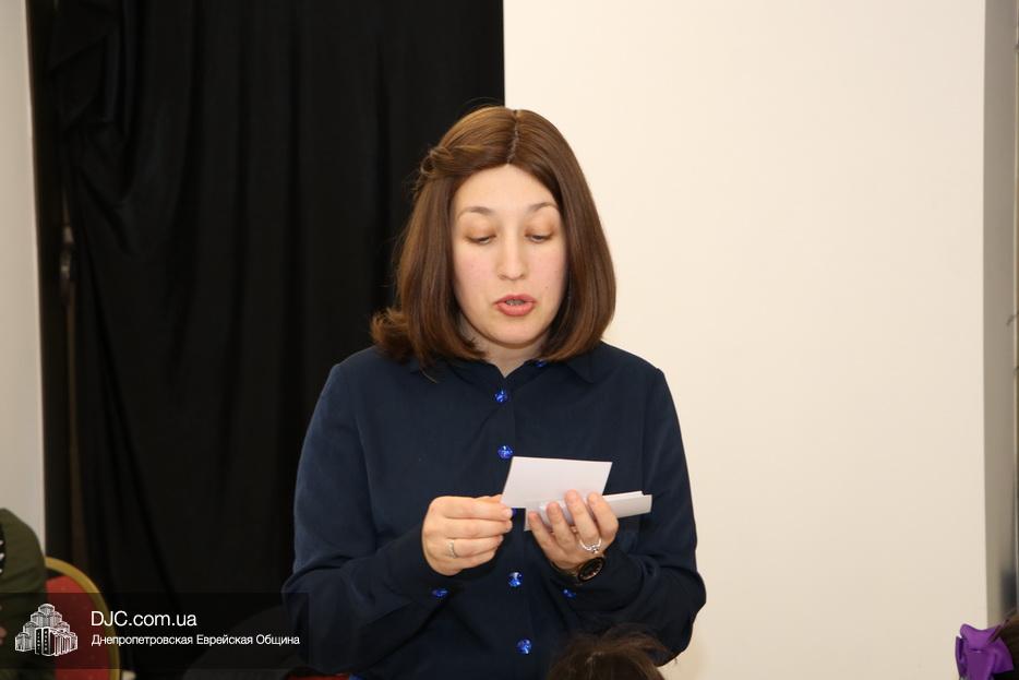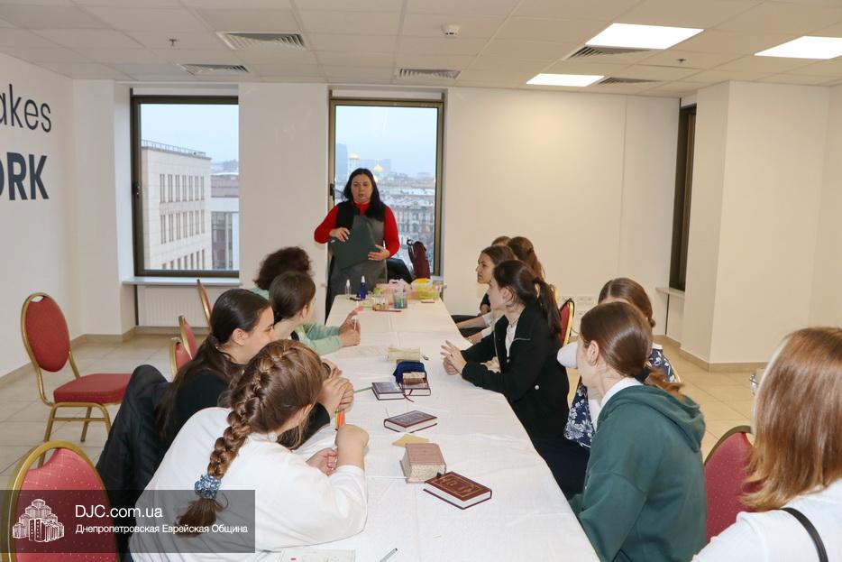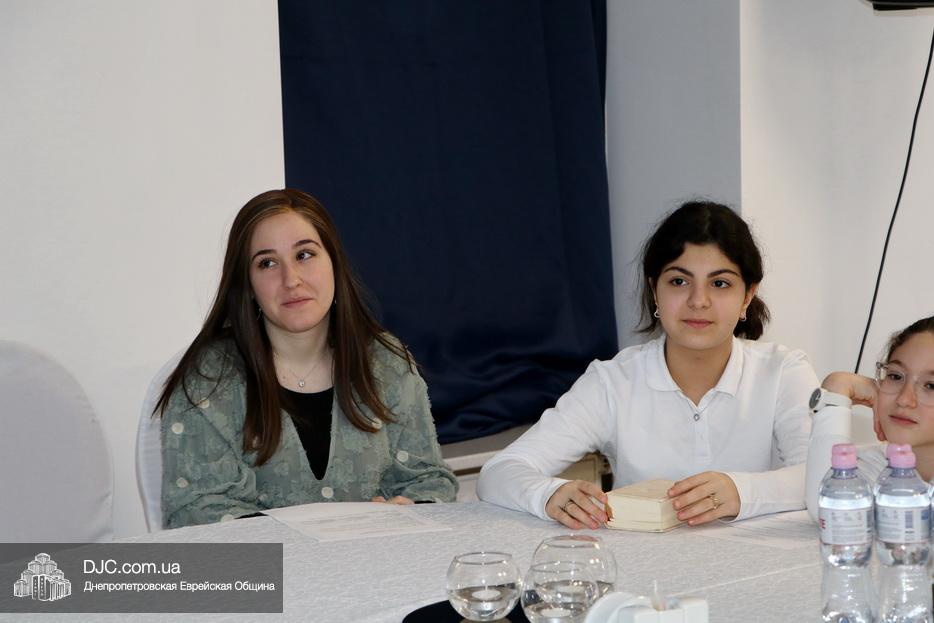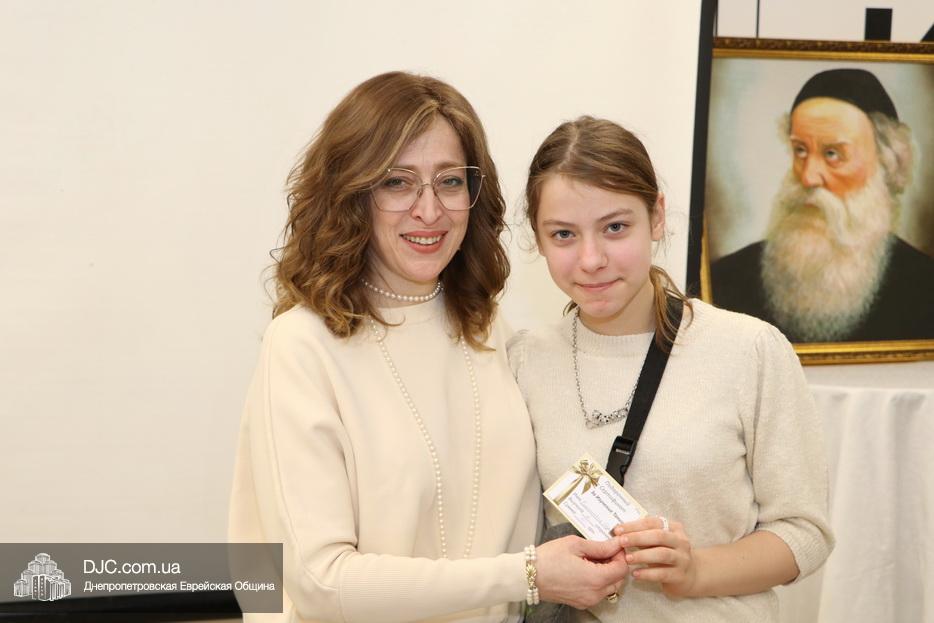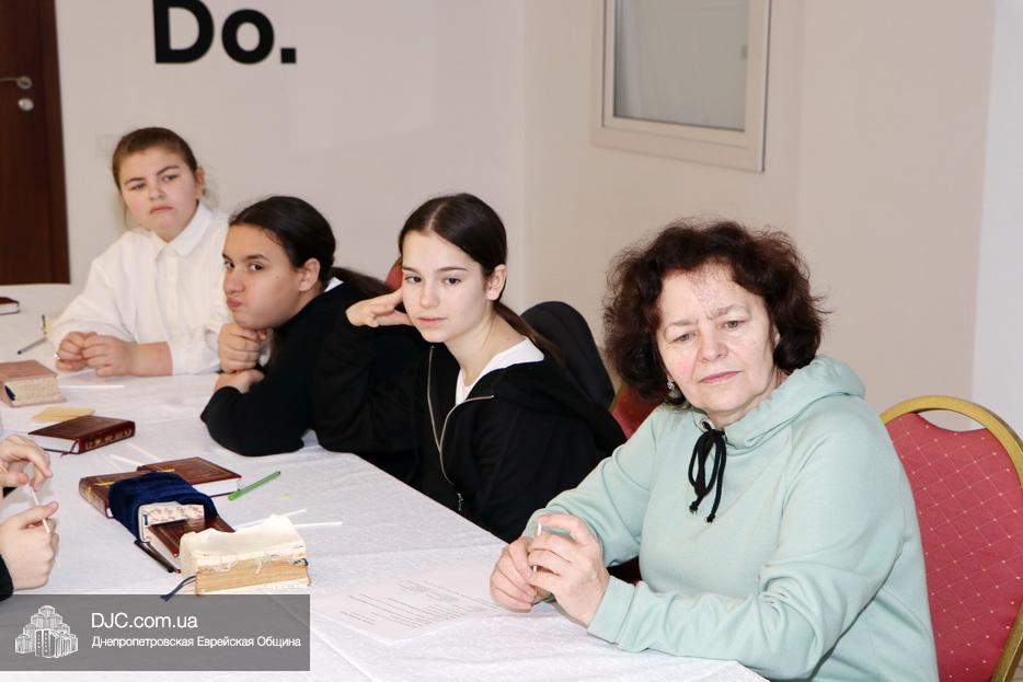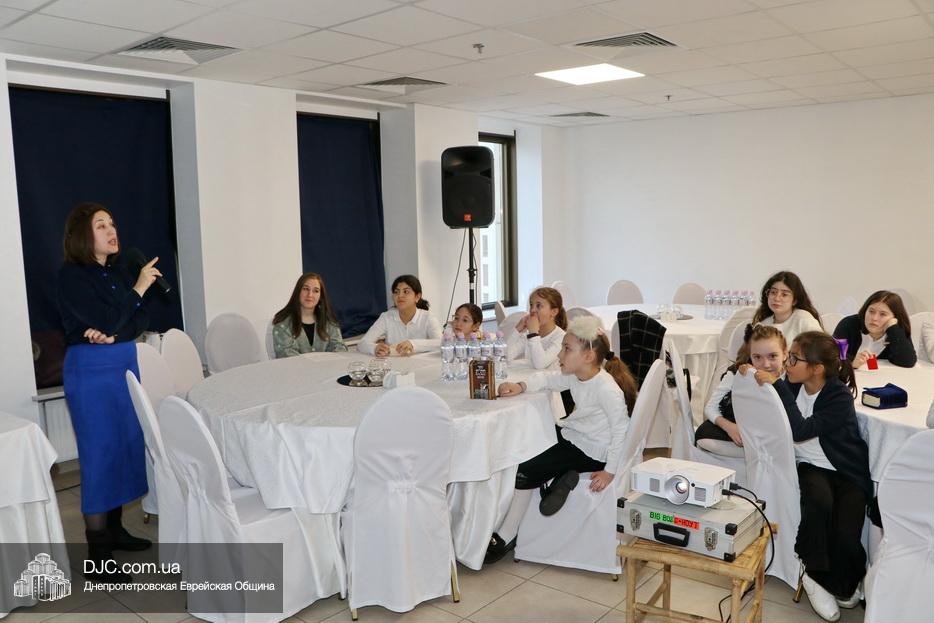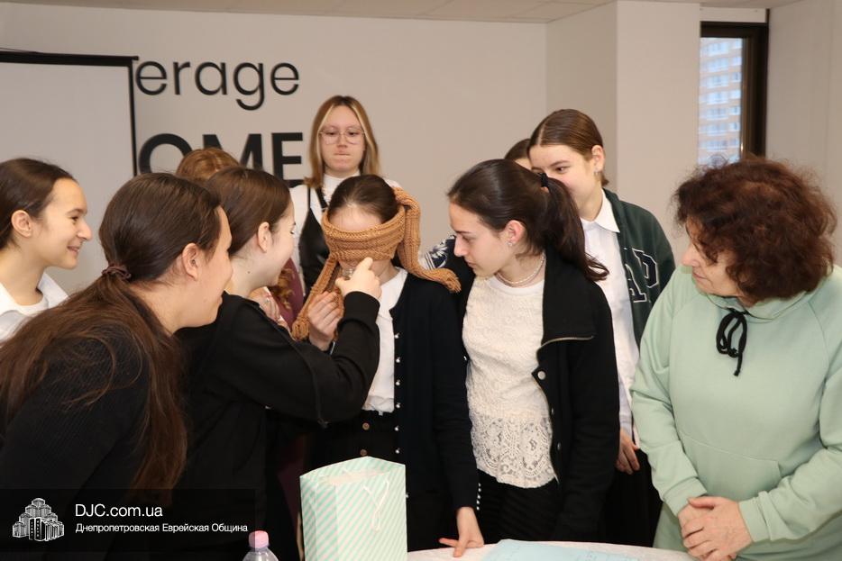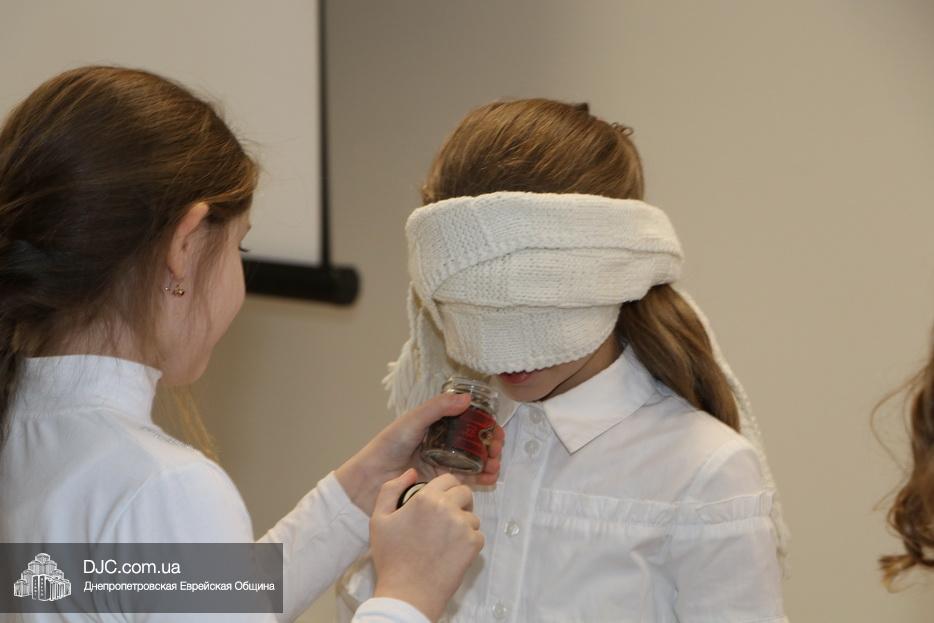 Затем состоялся настоящий хасидский фарбренген с вкусной и кошерной едой, а специальным гостем праздника стала ребецн Хана Каминецкая, рассказавшая девочкам историю о том, как они с ее супругом, Главным раввином Днепра реб Шмуэлем Каминецким, начинали свой посланнический путь в нашем городе в далеком 1990 году.