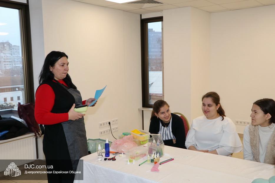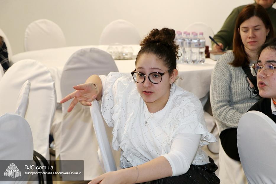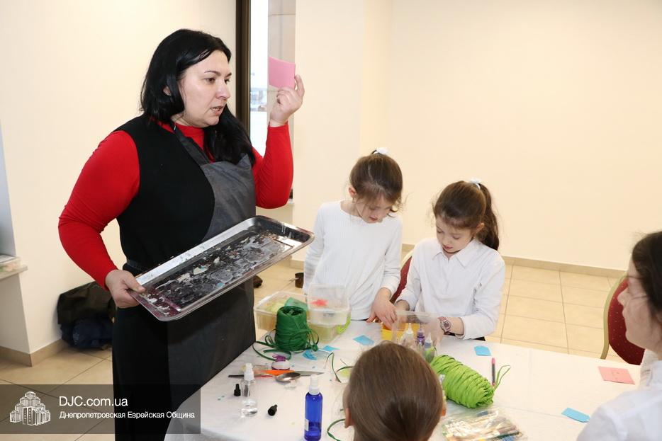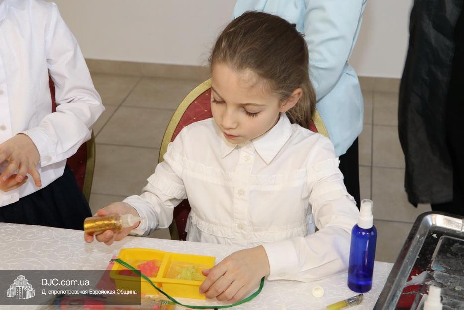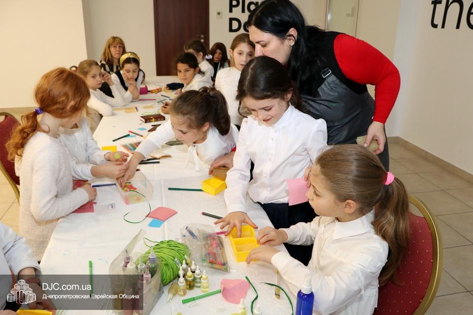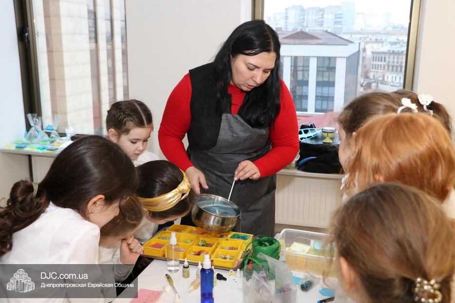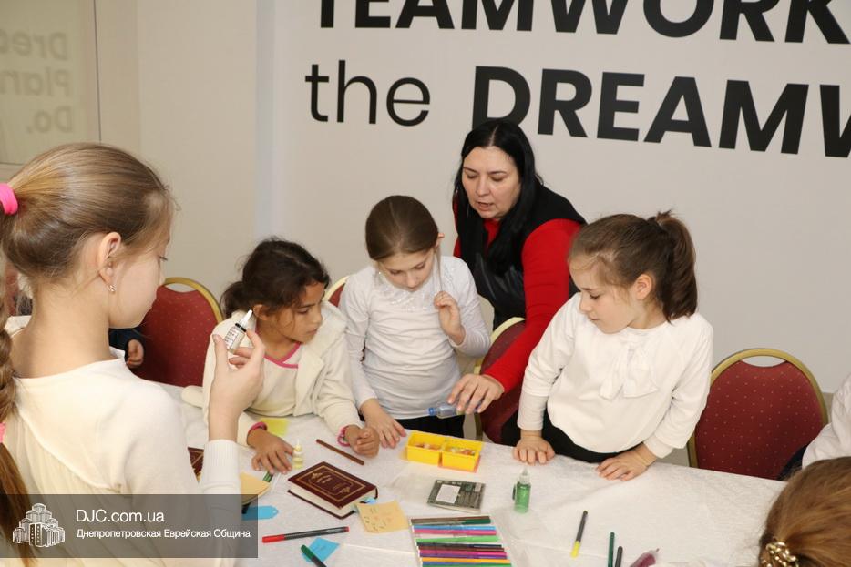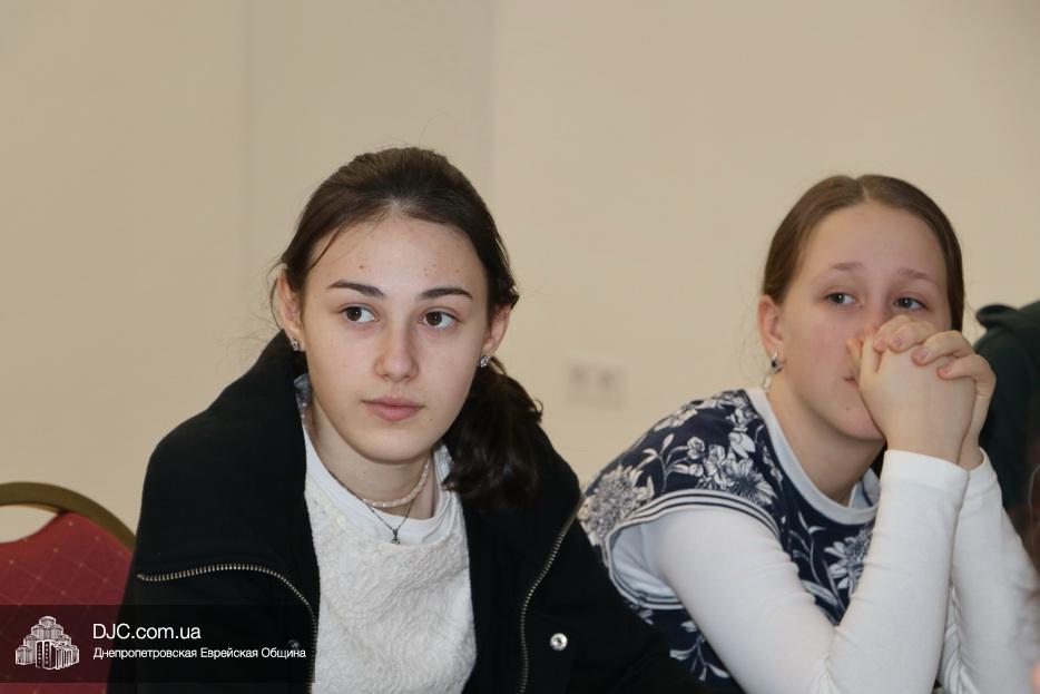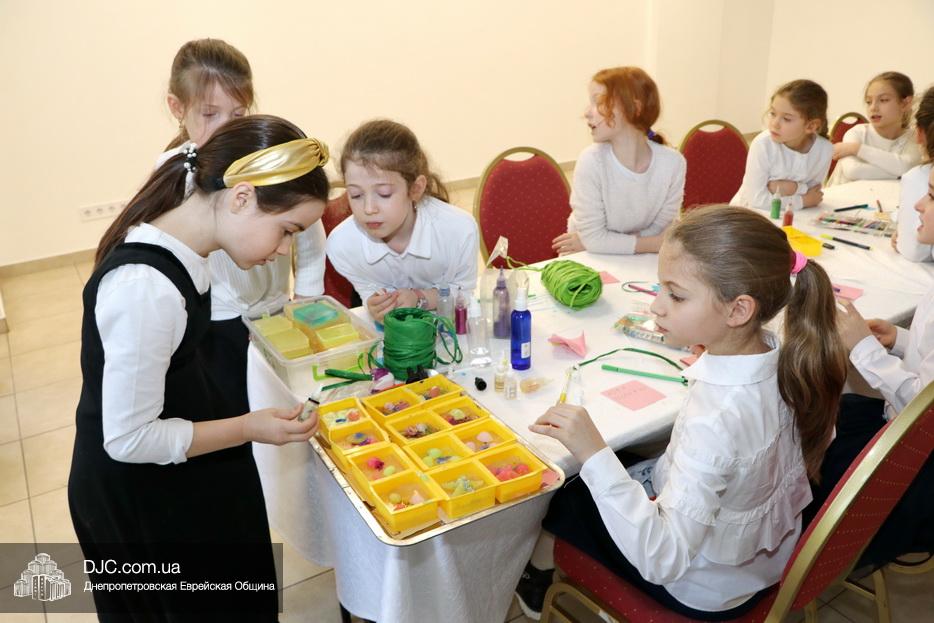 Затем состоялся настоящий хасидский фарбренген с вкусной и кошерной едой, а специальным гостем праздника стала ребецн Хана Каминецкая, рассказавшая девочкам историю о том, как они с ее супругом, Главным раввином Днепра реб Шмуэлем Каминецким, начинали свой посланнический путь в нашем городе в далеком 1990 году.