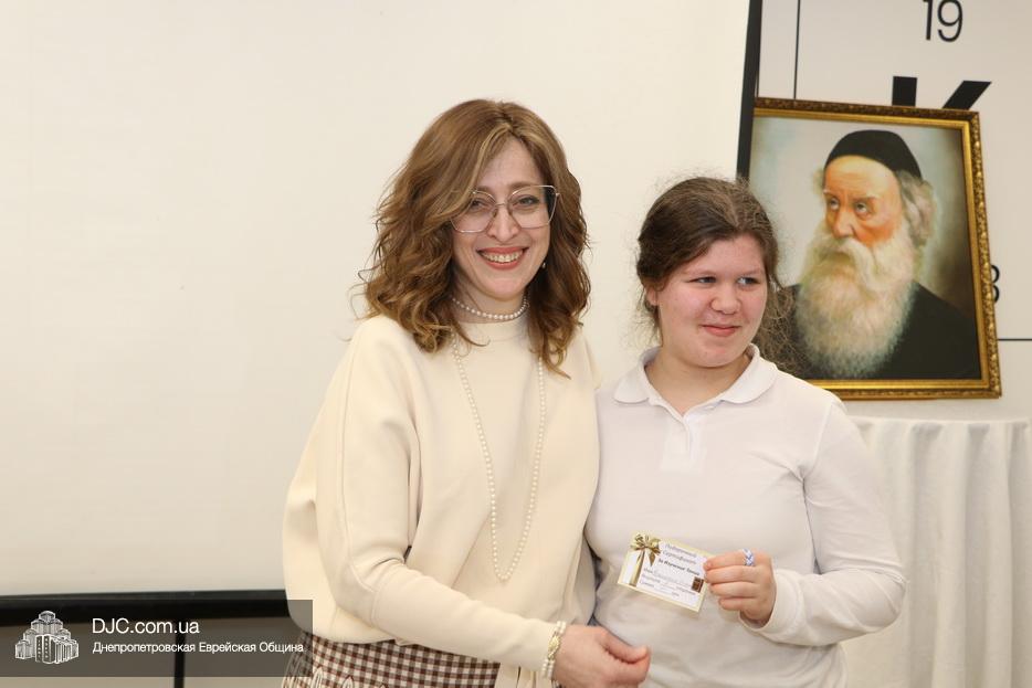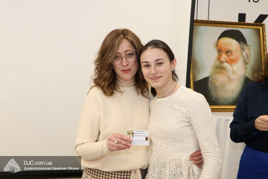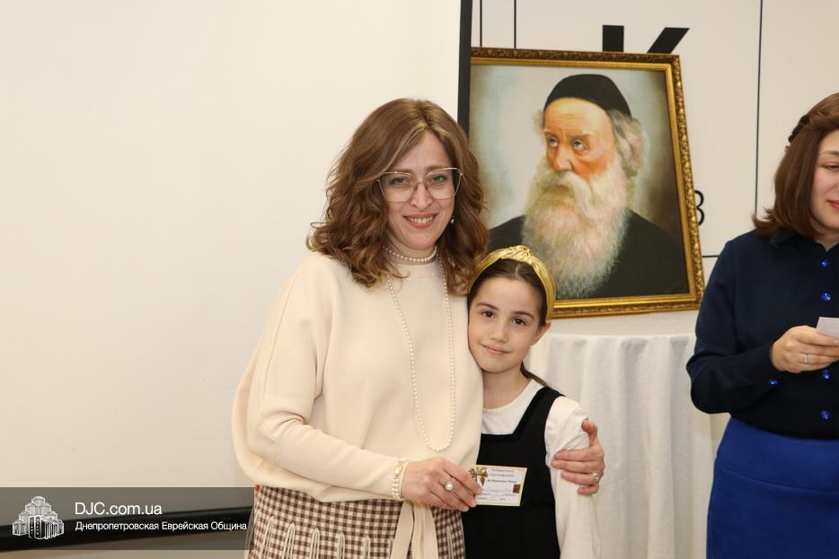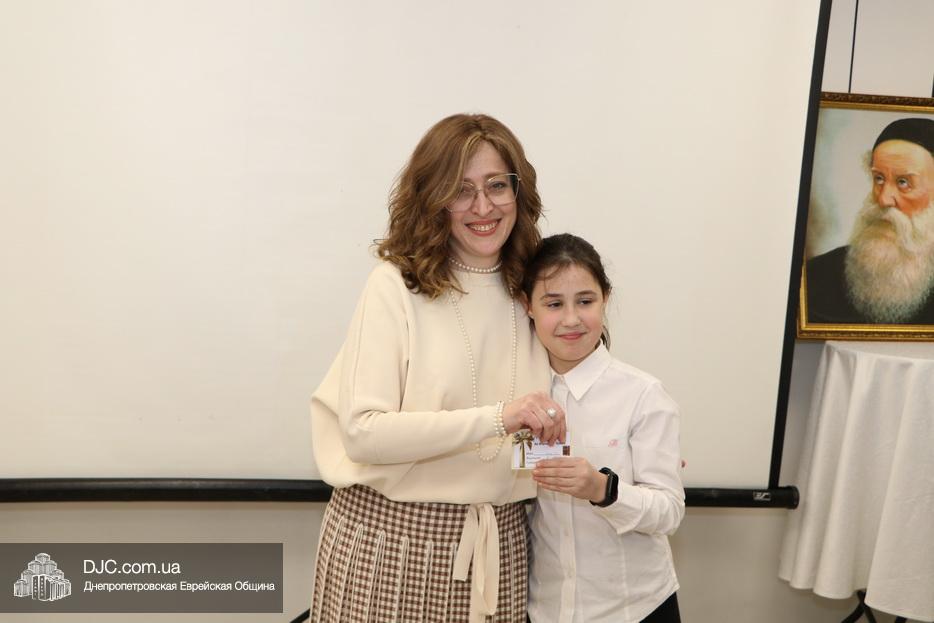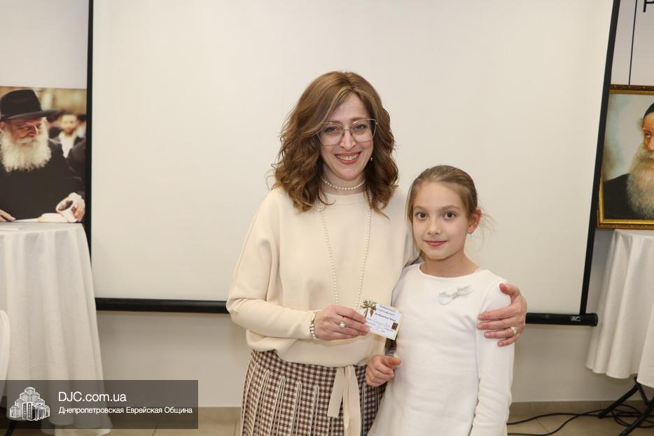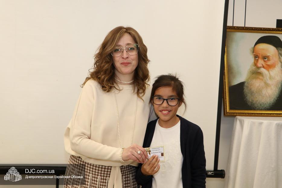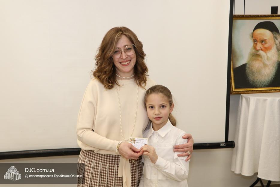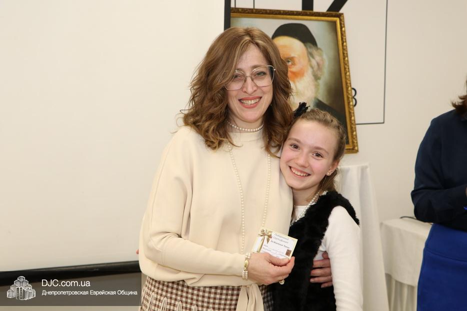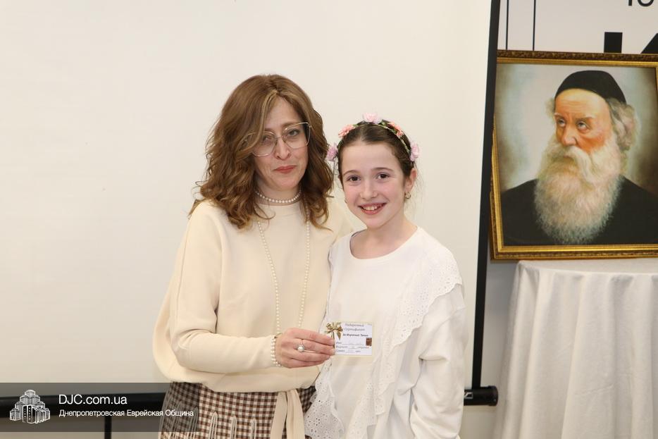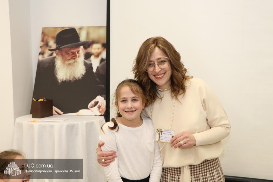 Кульминацией праздника стало награждение ребецн Ханой Каминецкой воспитанниц «Махона Хая-Мушка» сертификатами за выученные отрывки из книги «Тания» с указанием количества строк, которые выучила каждая ученицы. Победительницей этого соревнования стала Зиви Смилянская, которая выучила полностью весь перек. А затем праздник продолжился хасидским весельем, увлекательными майсами и нигунами в исполнении звонких девичьих голосов.