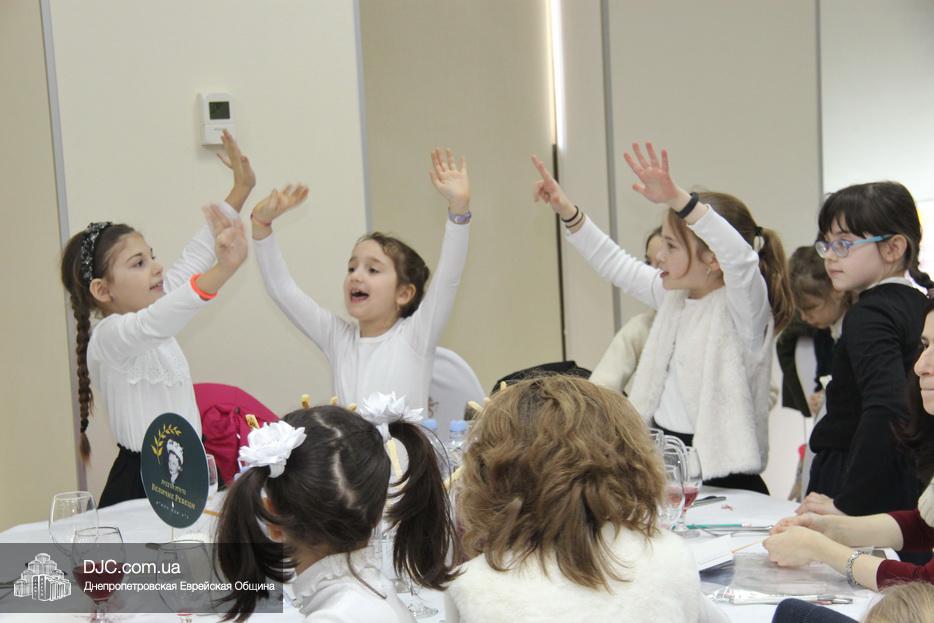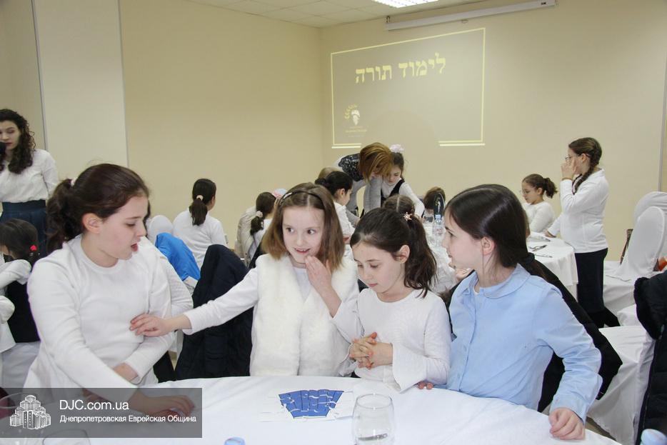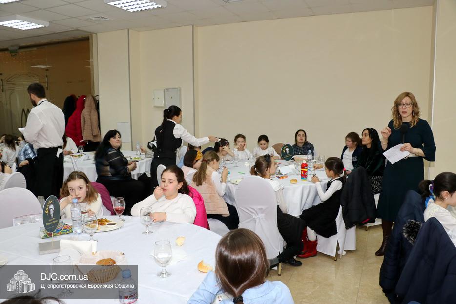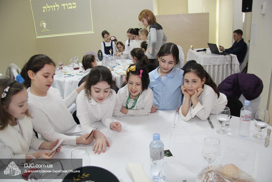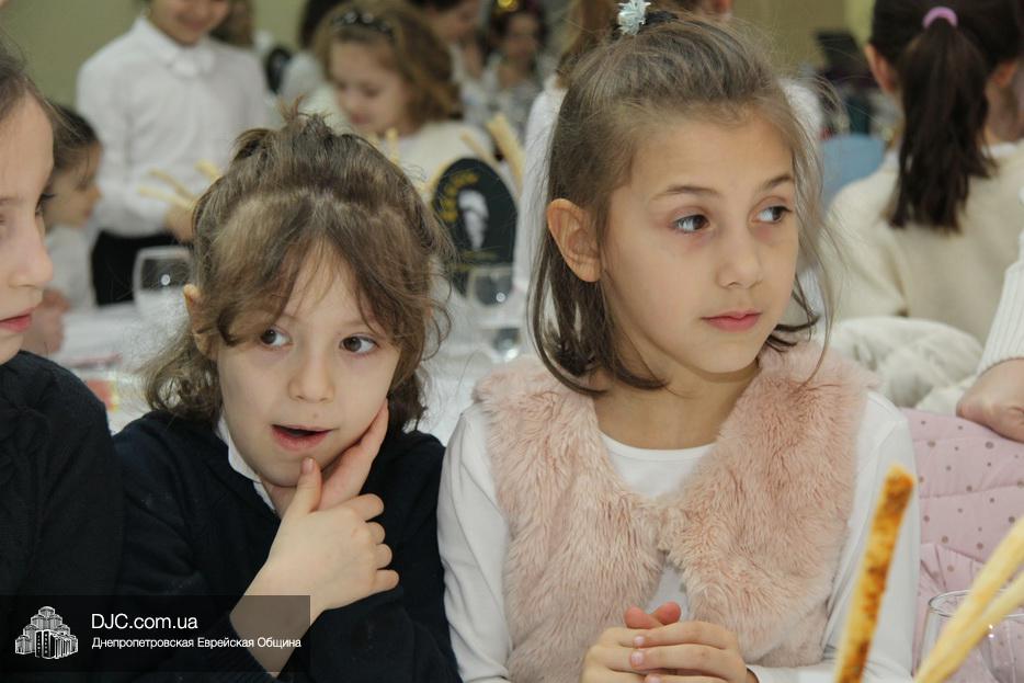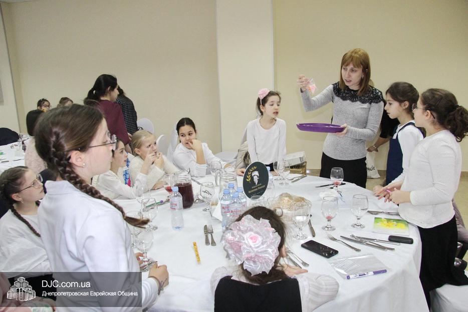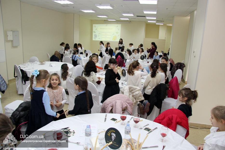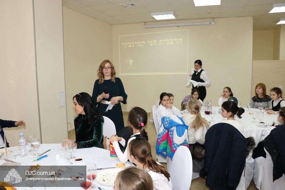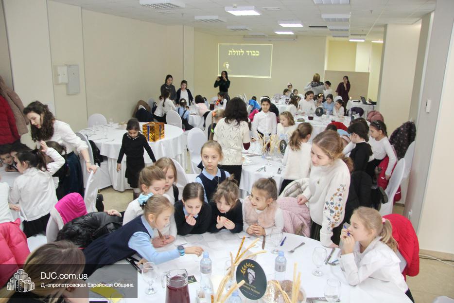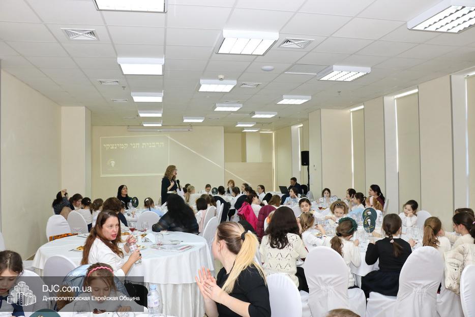 Все девочки уютно расположились за празднично накрытыми столами, и чтобы погрузиться в волнующую атмосферу этого важного дня был показан фильм о ребецн Хае-Мушке Шнеерсон. Ведущая праздника Фрида Чупина рассказала девочкам о важности этого дня, о ребецн Хае-Мушке Шнеерсон и о том, что девочки должны стремиться быть похожими на нее.
