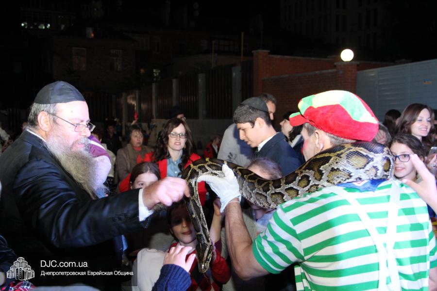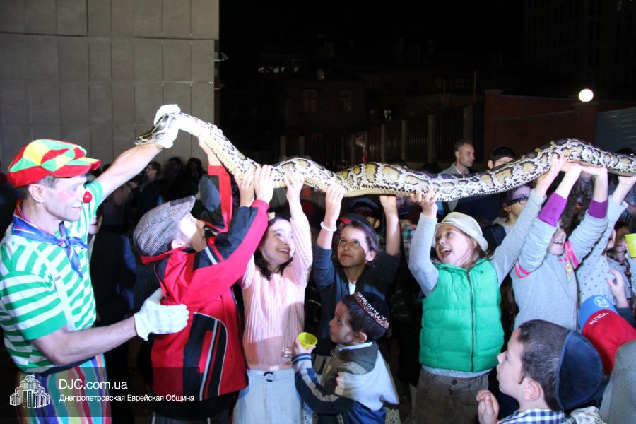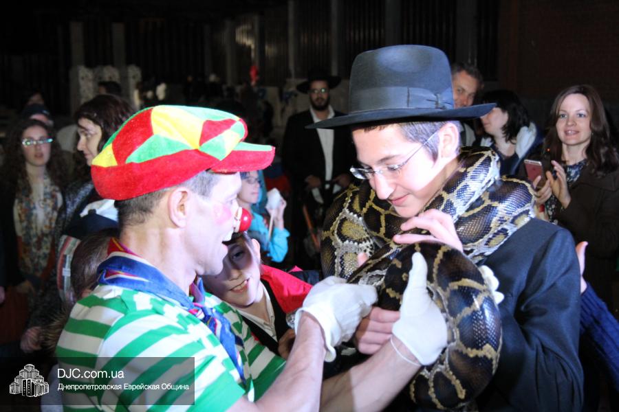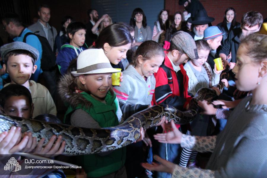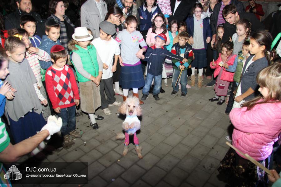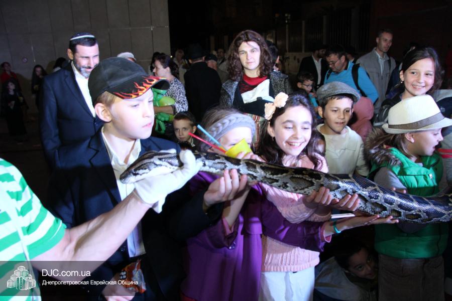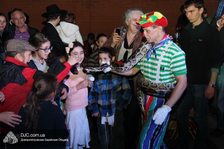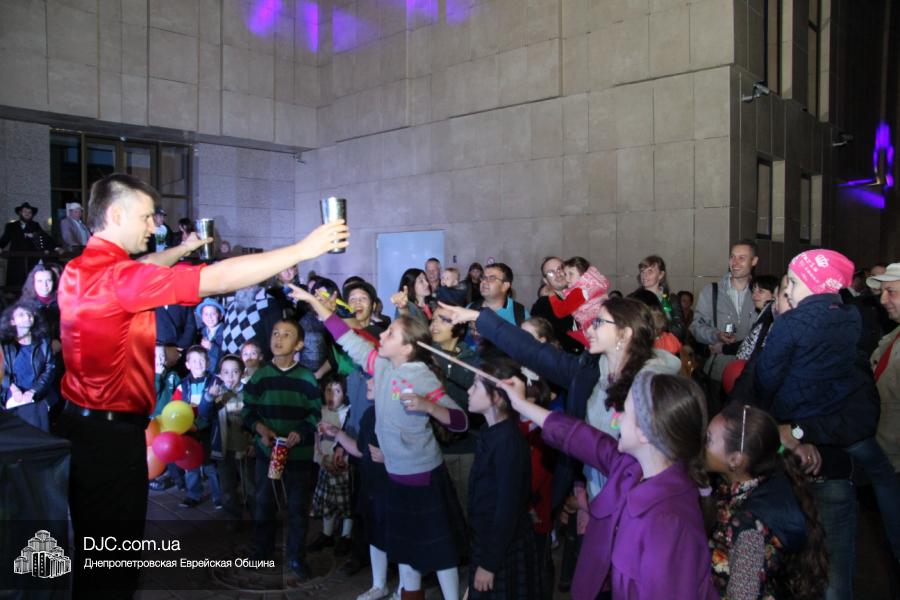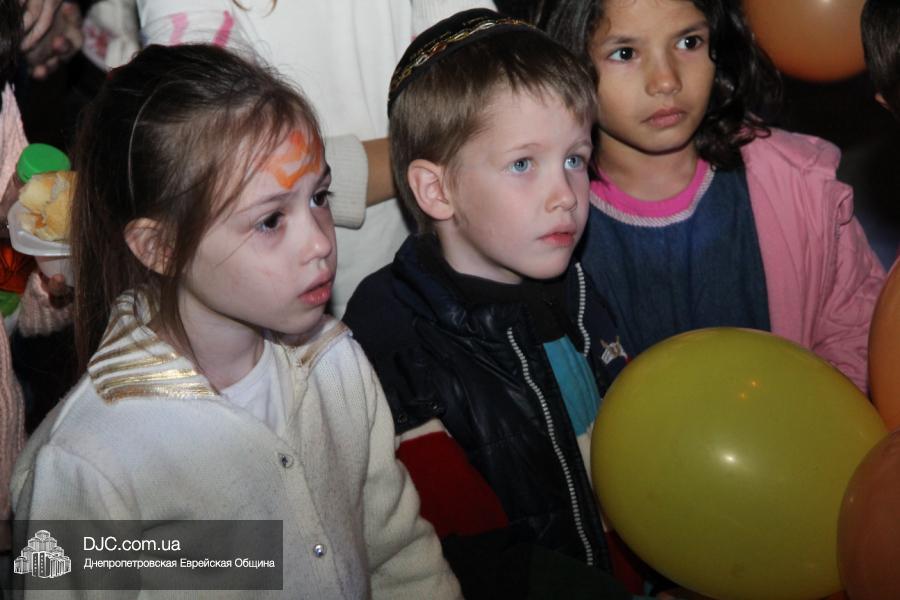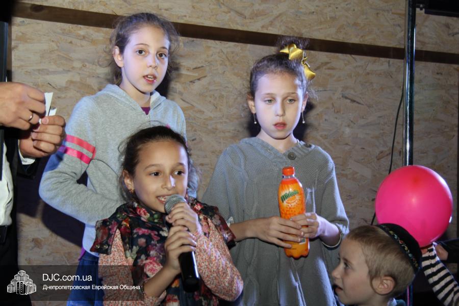 Дети еврейской общины Днепропетровска продемонстрировали свое знание традиций, продекламировав знаменитые «12 псуким» и ответив на каверзные вопросы ведущего. За правильный ответ выдавался купон на получение вкусного приза – столь любимой маленькими детьми «сладкой ваты».