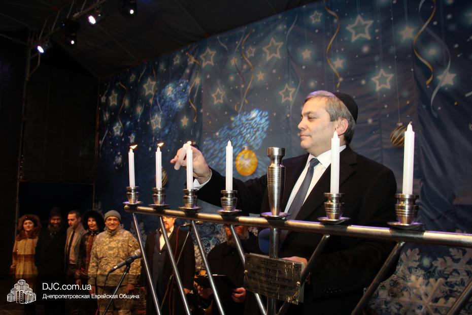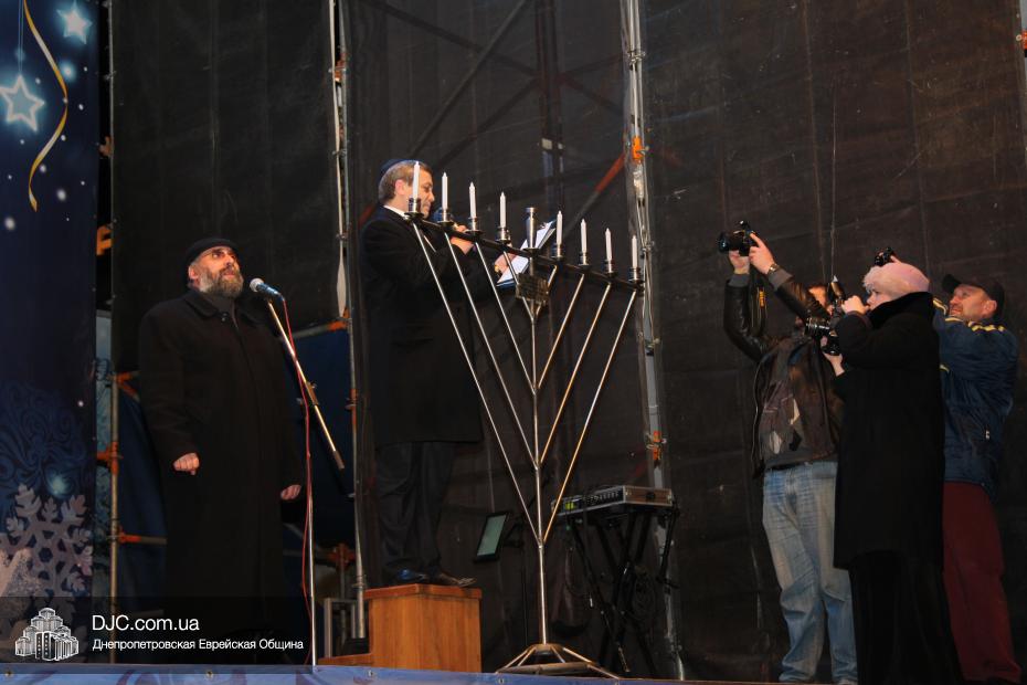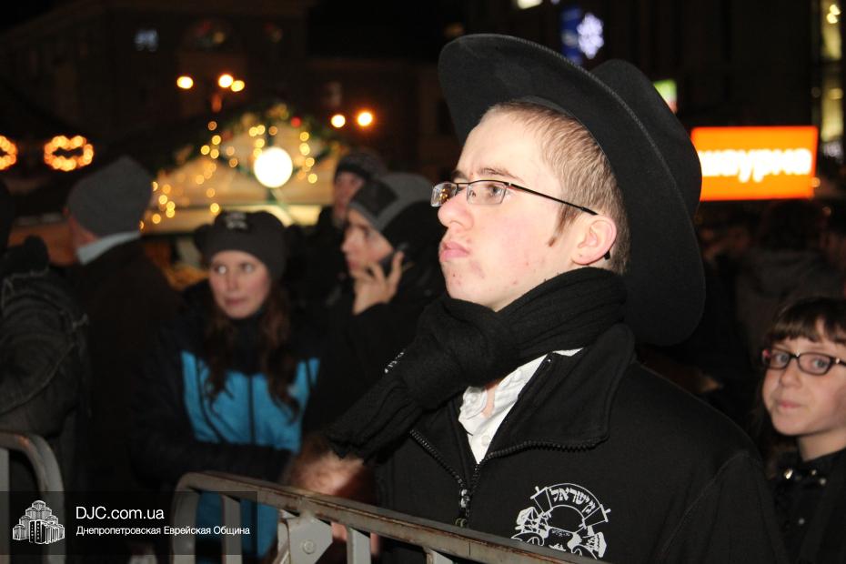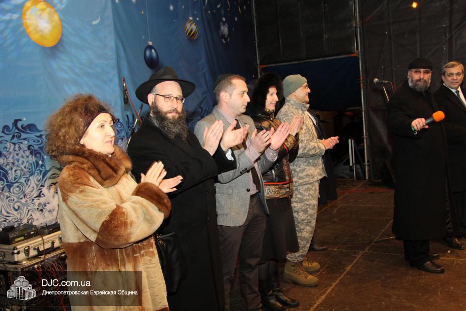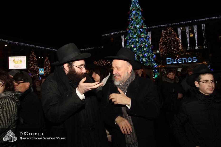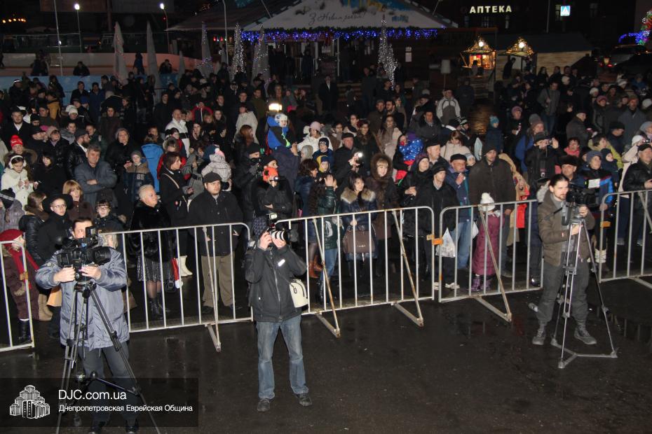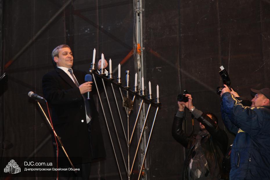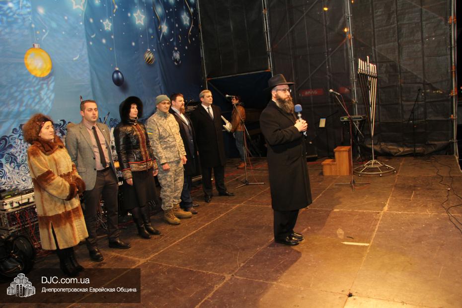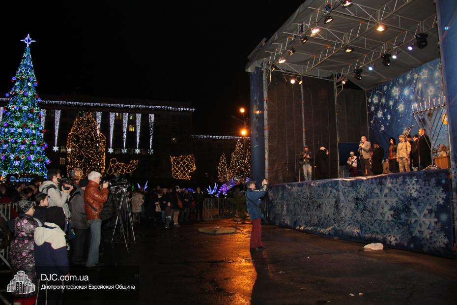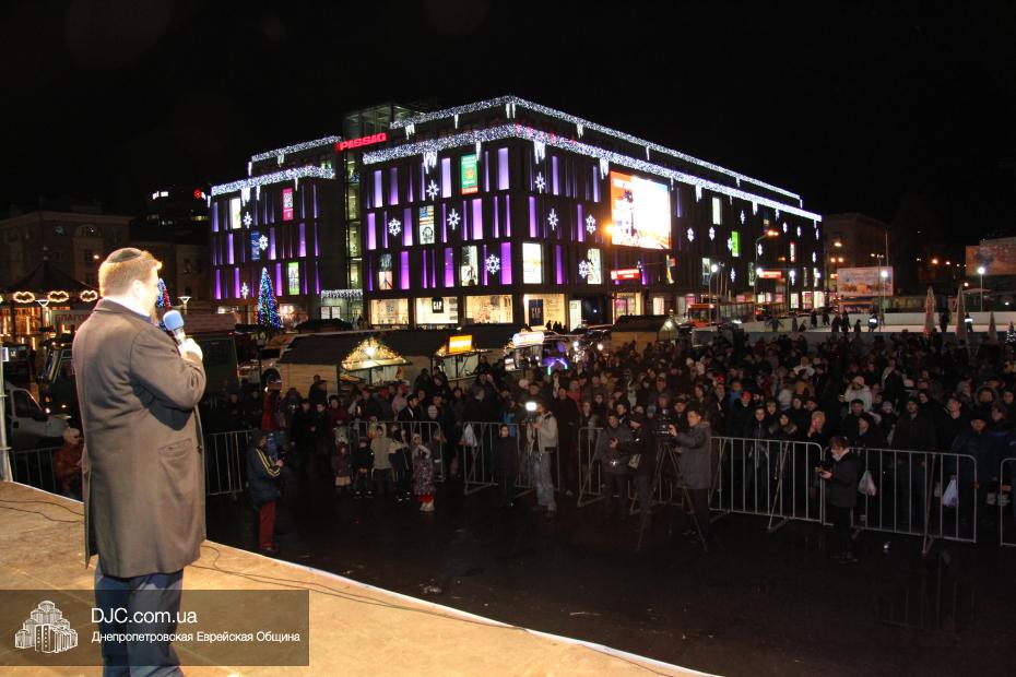 Для участия в торжественном зажигании городской Ханукии прибыли представители городского и областного руководства, лидеры еврейских организаций, дипломатического корпуса и национально-культурных объединений. Прочитав благословение, все восемь свечей праздника торжественно зажег советник председателя Днепропетровской областной государственной администрации Борис Трейгерман, который затем обратился к тысячам днепропетровцев, пришедшим на площадь.