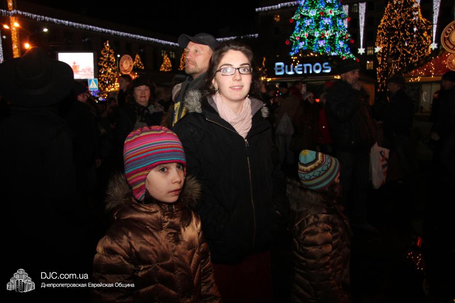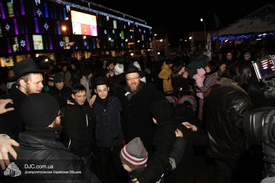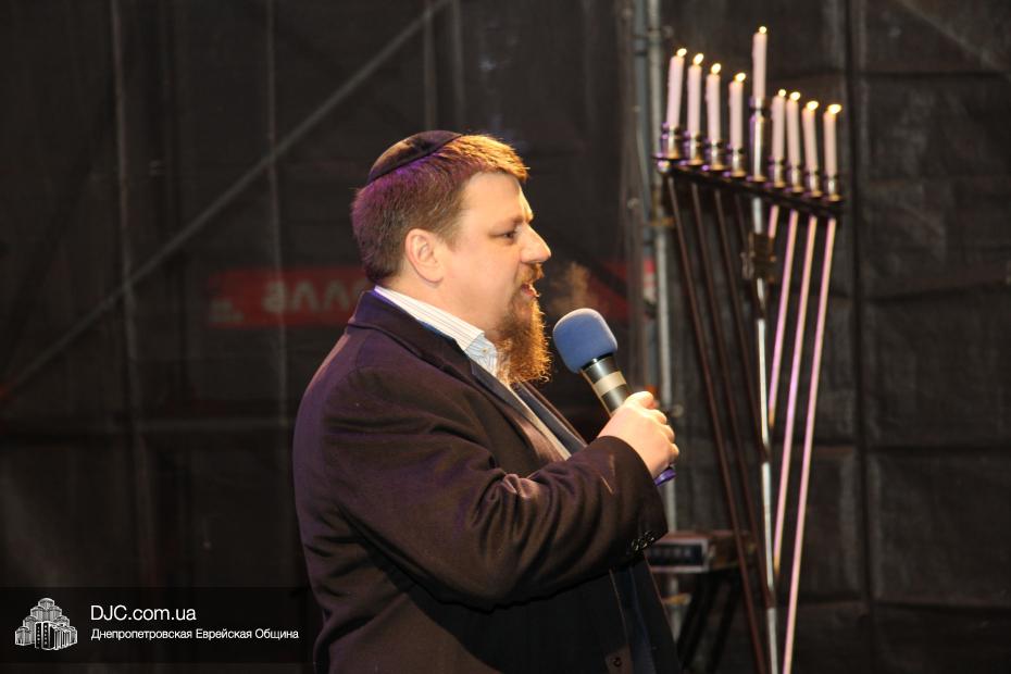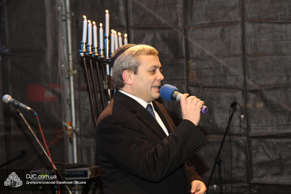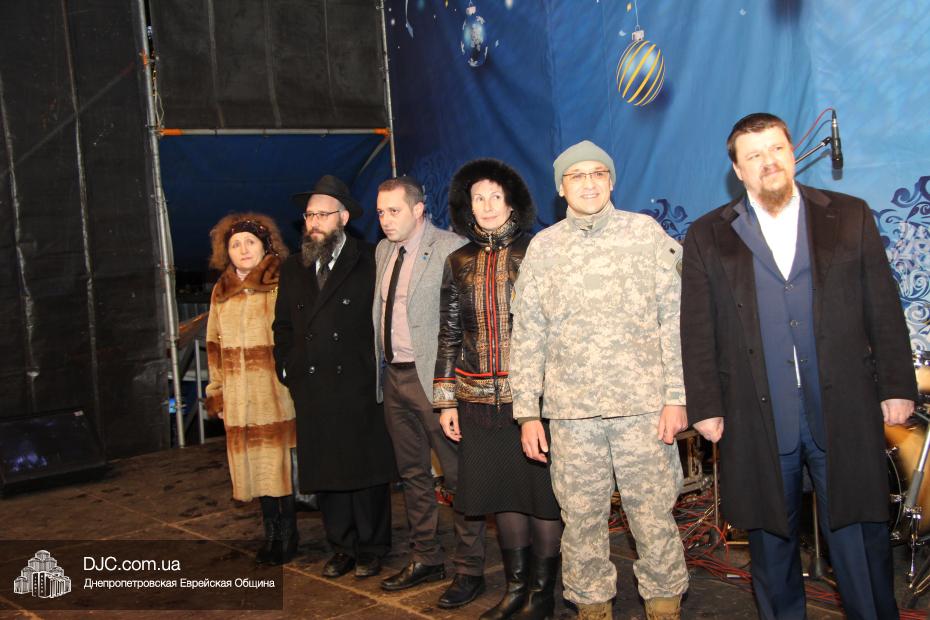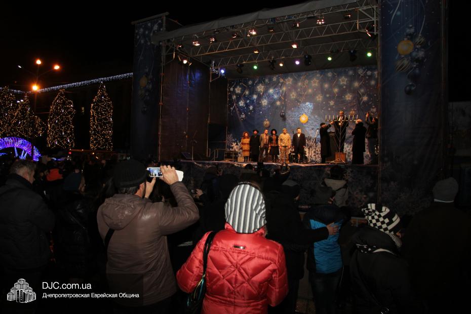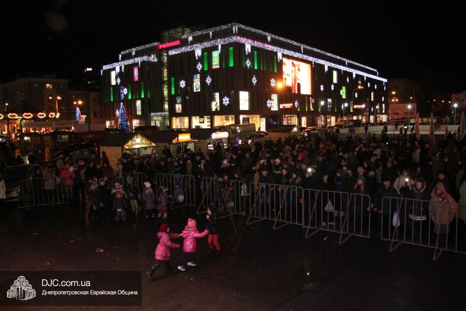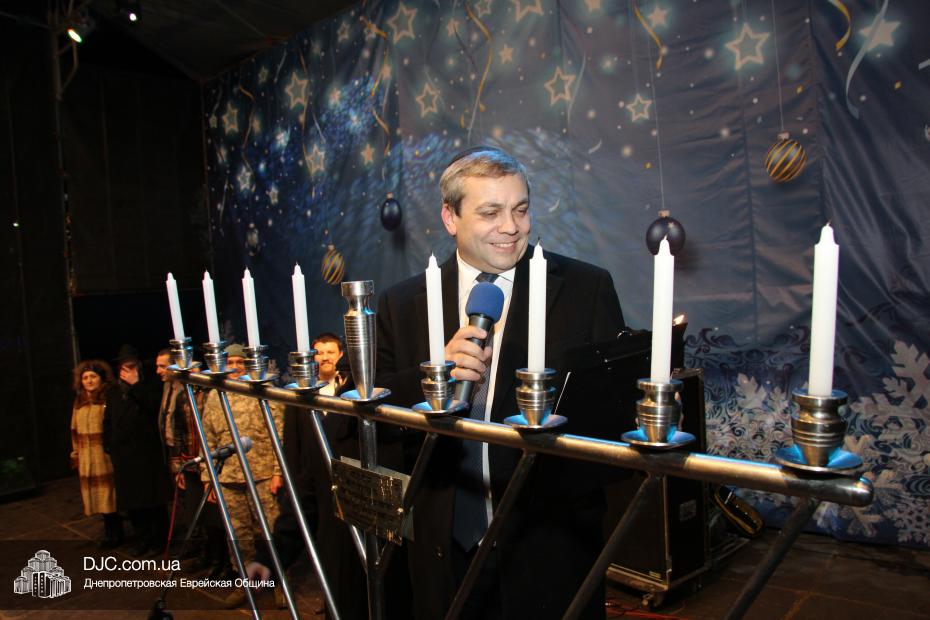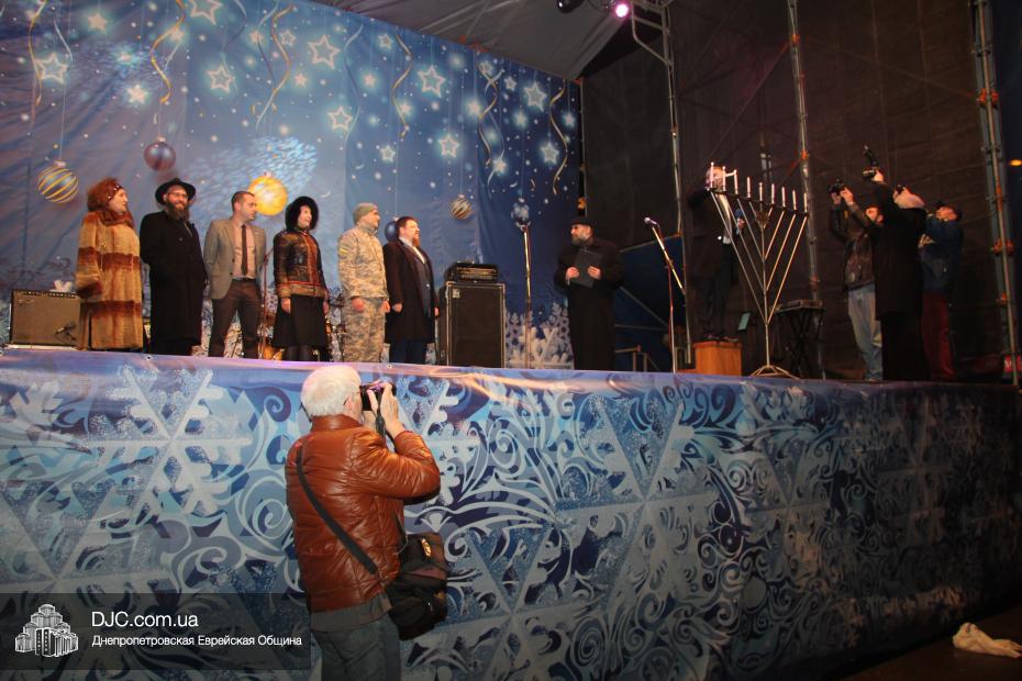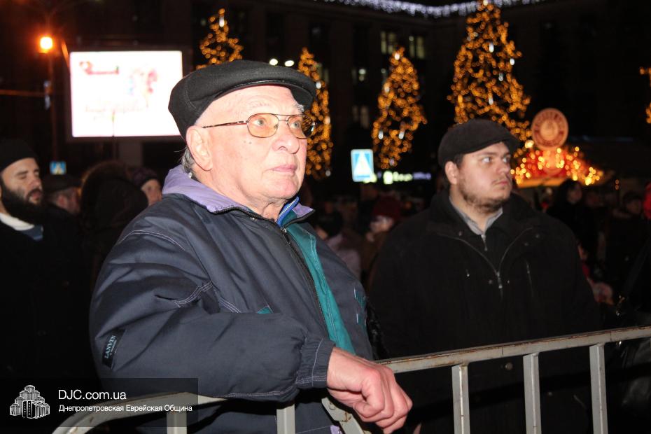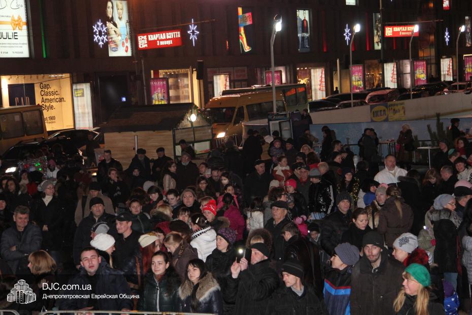 Для участия в торжественном зажигании городской Ханукии прибыли представители городского и областного руководства, лидеры еврейских организаций, дипломатического корпуса и национально-культурных объединений. Прочитав благословение, все восемь свечей праздника торжественно зажег советник председателя Днепропетровской областной государственной администрации Борис Трейгерман, который затем обратился к тысячам днепропетровцев, пришедшим на площадь.