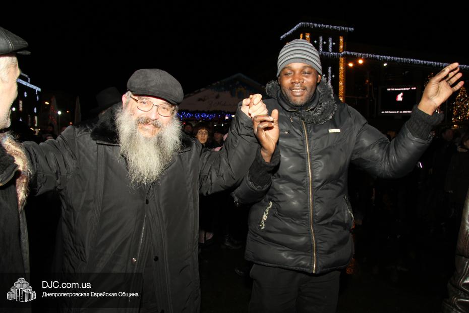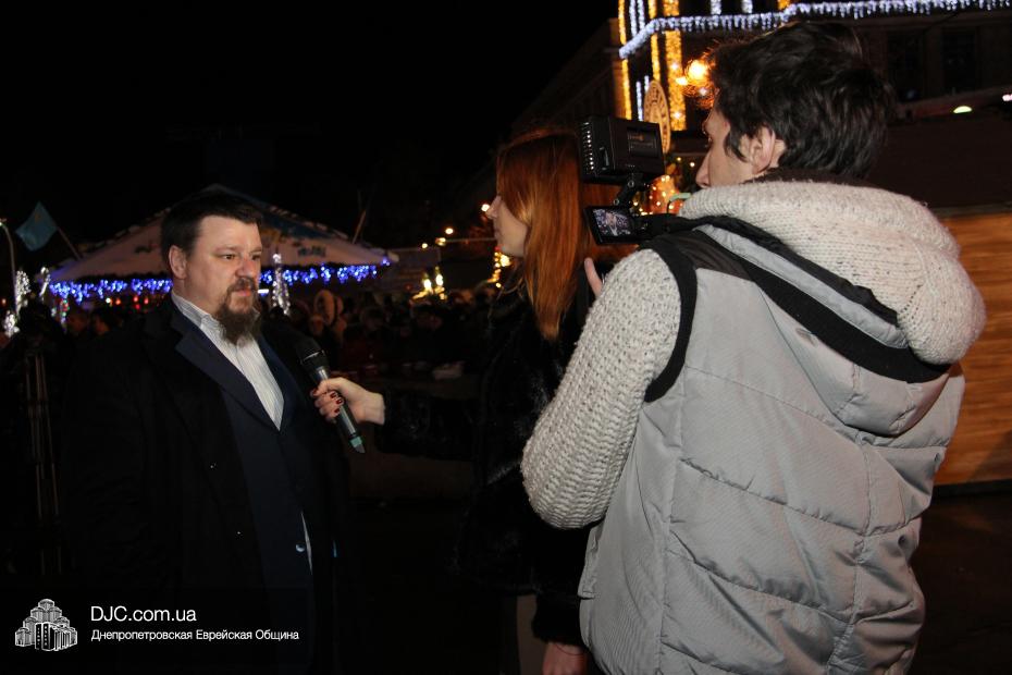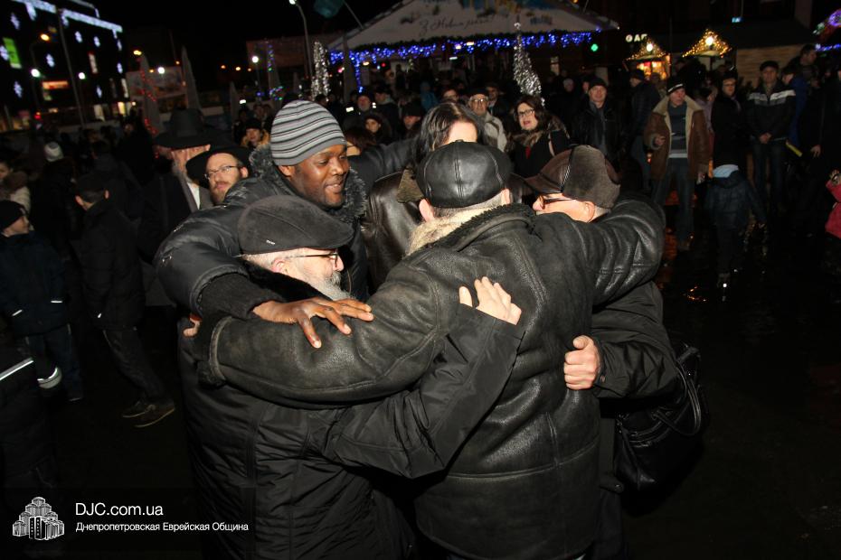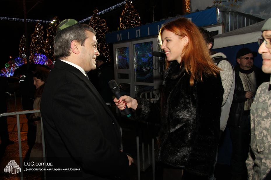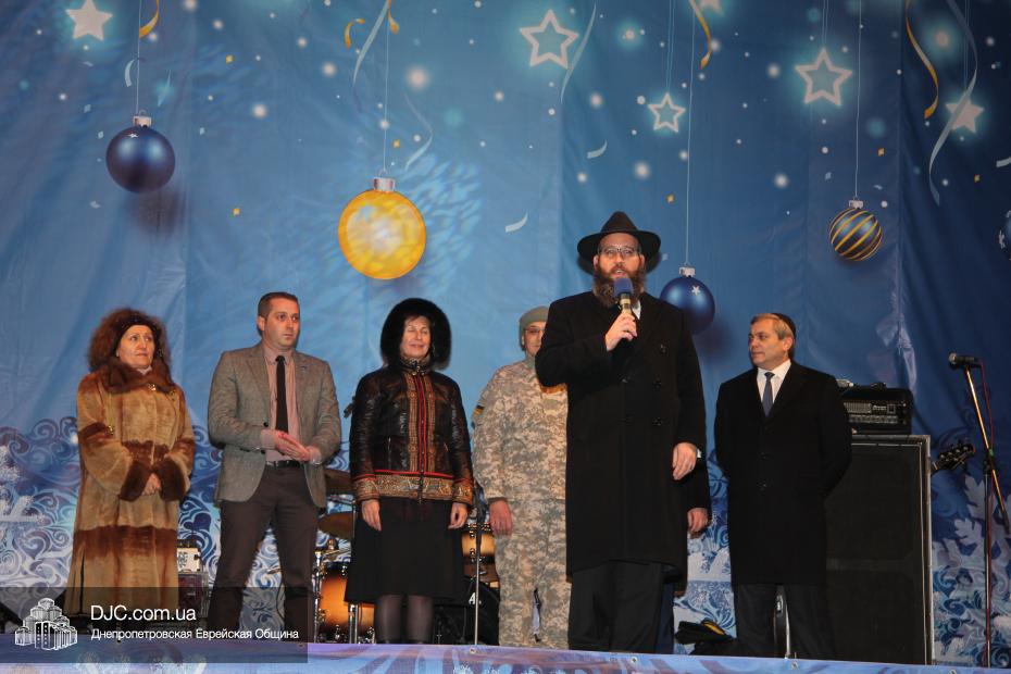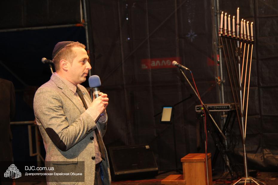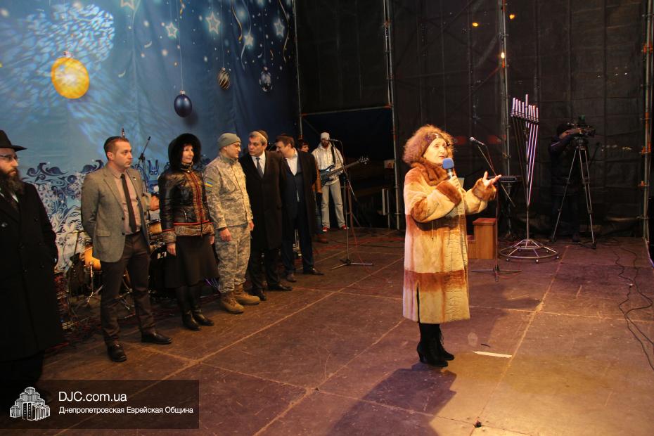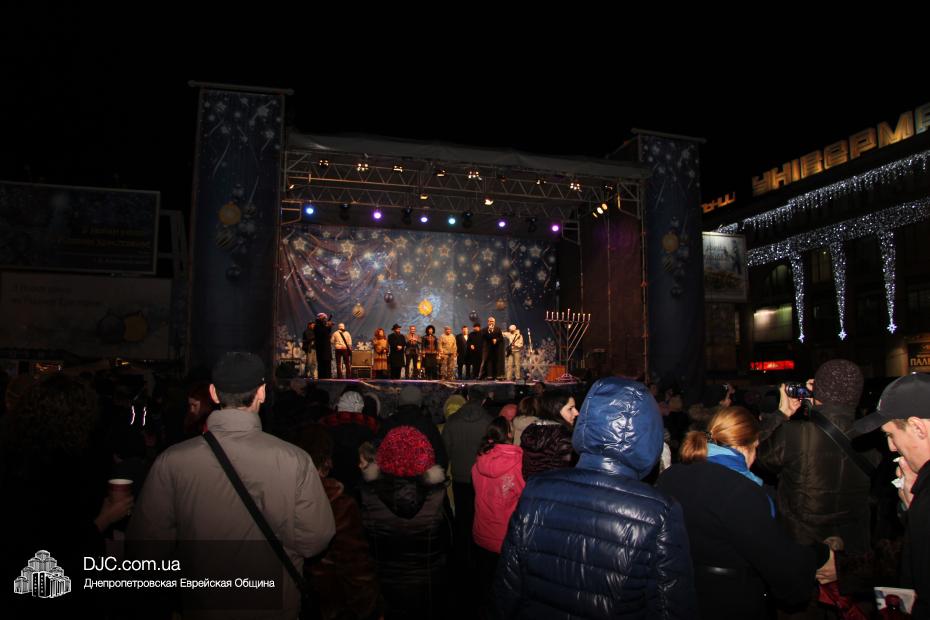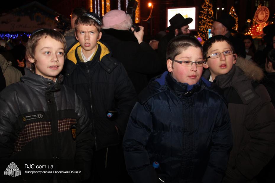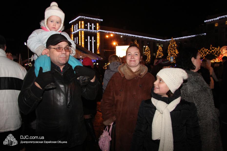 Для участия в торжественном зажигании городской Ханукии прибыли представители городского и областного руководства, лидеры еврейских организаций, дипломатического корпуса и национально-культурных объединений. Прочитав благословение, все восемь свечей праздника торжественно зажег советник председателя Днепропетровской областной государственной администрации Борис Трейгерман, который затем обратился к тысячам днепропетровцев, пришедшим на площадь.