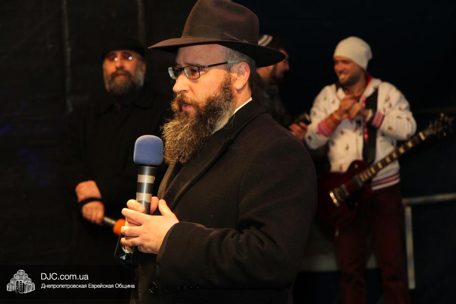 Самые теплые поздравления и пожелания мира, добра и счастья в каждом доме и во всей стране от имени Главного раввина Днепропетровска и региона Шмуэля Каминецкого передал собравшимся ведущий мероприятия Олег Ростовцев.
