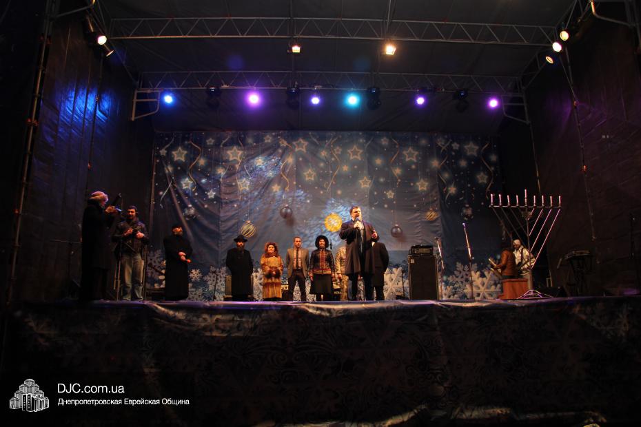 Ханукальную программу на главной площади продолжило выступление группы «Санки Деда», большую часть репертуара которой составили еврейские композиции, и огненное шоу. Все пришедшие могли полакомиться кошерными пончиками и напитками, а также очень хорошо и весело провести время.