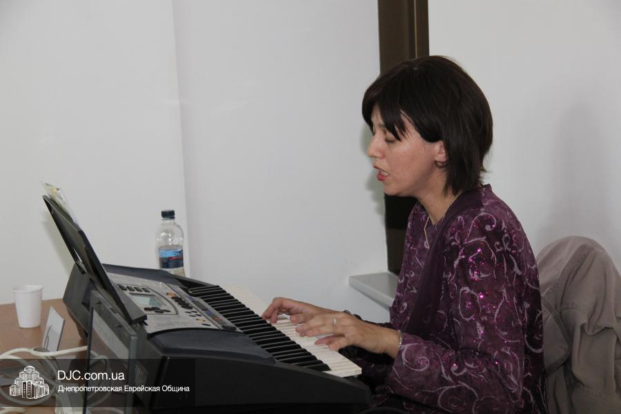 Затем наступило время для музыкального сюрприза – выступление Элишевы Альтман, супруги нового посланника, работающего в «Бейт Хане», которая исполнила несколько песен на русском, идише и иврите, под аккомпанемент электромузыкального инструмента.
