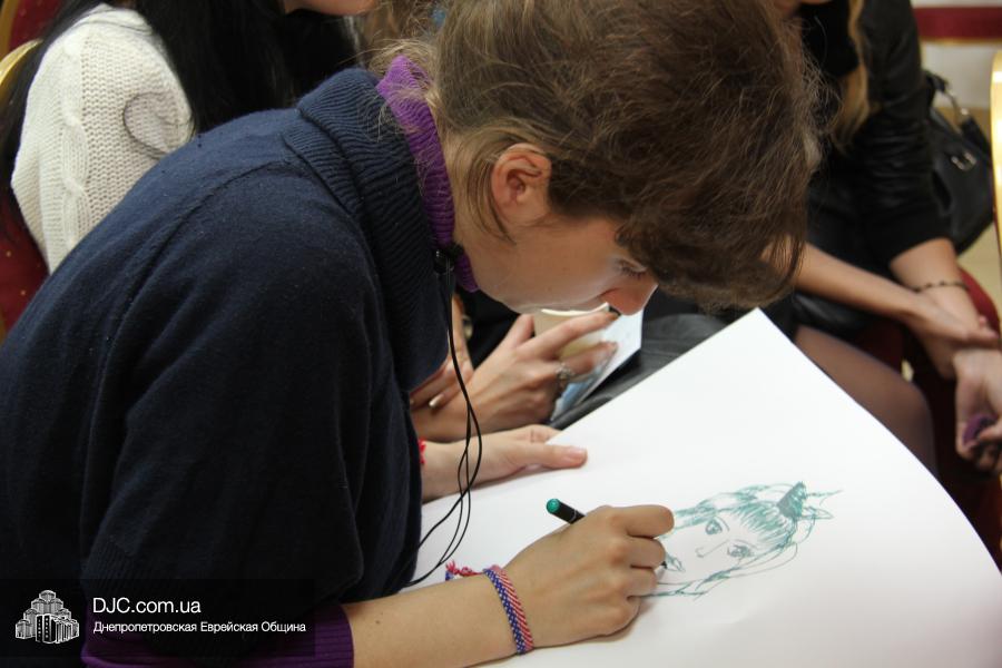 В это время вторая группа, также разбившись на подгруппы, под руководством Хагид Мануйловой рисовала образ счастливой еврейской женщины, но не в будущем, а в настоящем. А затем, представив свое творение в публичной дискуссии, защищали предложенную точку зрения.